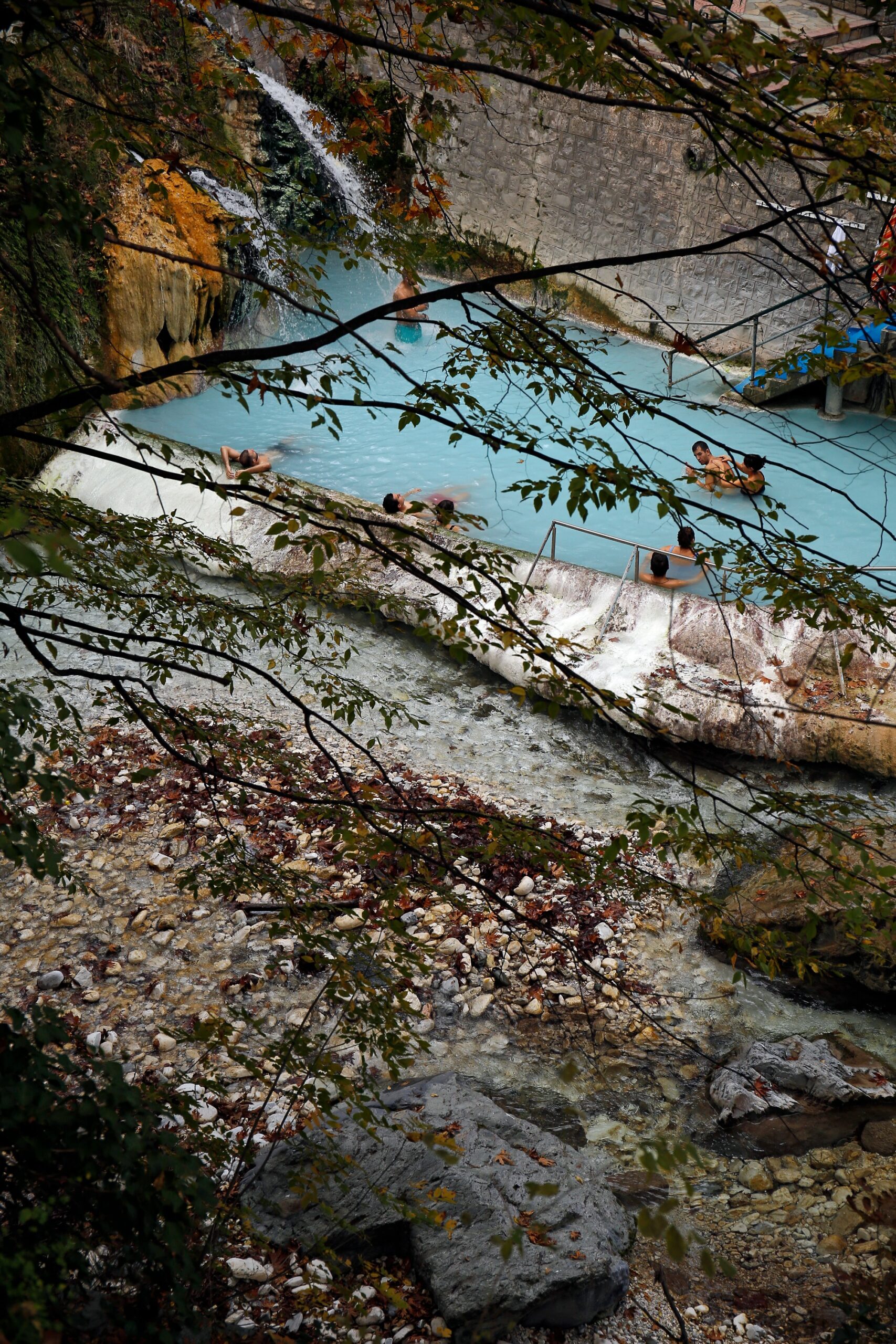 Εδώ, σας δίνετε η επιλογή να διαλέξετε να κάνετε κράτηση για κάποια από τις μικρές εσωτερικές πισίνες (για 1, 6 ή 12 άτομα) ή να προτιμήσετε την εξωτερική πισίνα με τα ιαματικά νερά, όπου ακριβώς δίπλα πέφτει ο καταρράκτης με κρύο νερό. Πολλοί από τους επισκέπτες τολμούν ακόμα και τον χειμώνα να δοκιμάσουν την εξωτερική πισίνα και να εναλλάσσουν το ζεστό με το κρύο νερό.