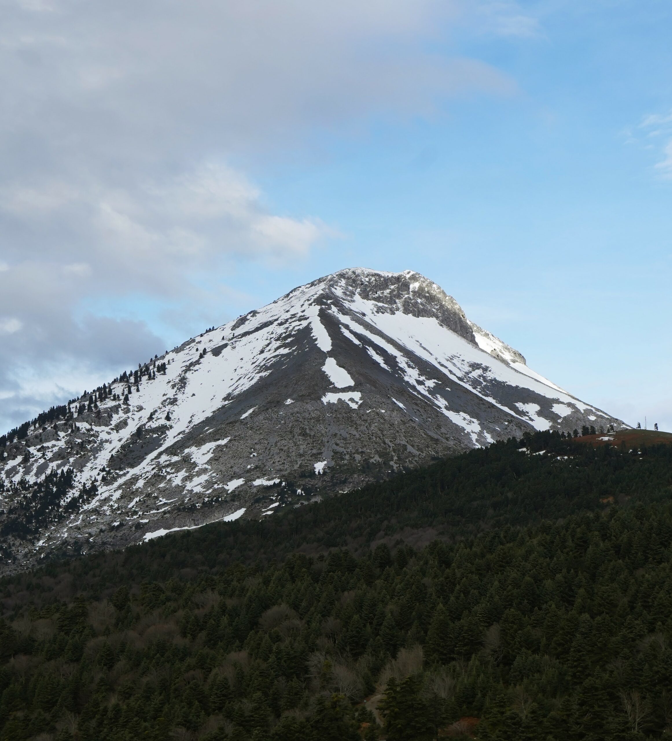 Έχοντας ως βάση μας το ορειβατικό καταφύγιο «Μιχάλης Νικολάου», σε υψόμετρο 1.123 μέτρων, περνάμε τη νύχτα κάτω από τη σκιά της πολυπόθητης κορυφής και τον έναστρο ουρανό. Νωρίς το πρωί, με το πρώτο φως της αυγής, μαγευόμαστε από την εντυπωσιακή «φορεσιά» του βουνού. Ο ήλιος αγωνίζεται να ξεπροβάλλει, τα πρώτα φύλλα στα δέντρα αστράφτουν καθώς τα χαϊδεύει το φως, ενώ ο απαλός ήχος του ανέμου τα αγγίζει. Η ατμόσφαιρα είναι γαλήνια και δροσερή, με λεπτά πέπλα ομίχλης να αιωρούνται τριγύρω, και η ευωδιά του πεύκου και της υγρής γης γίνεται όλο και πιο έντονη.