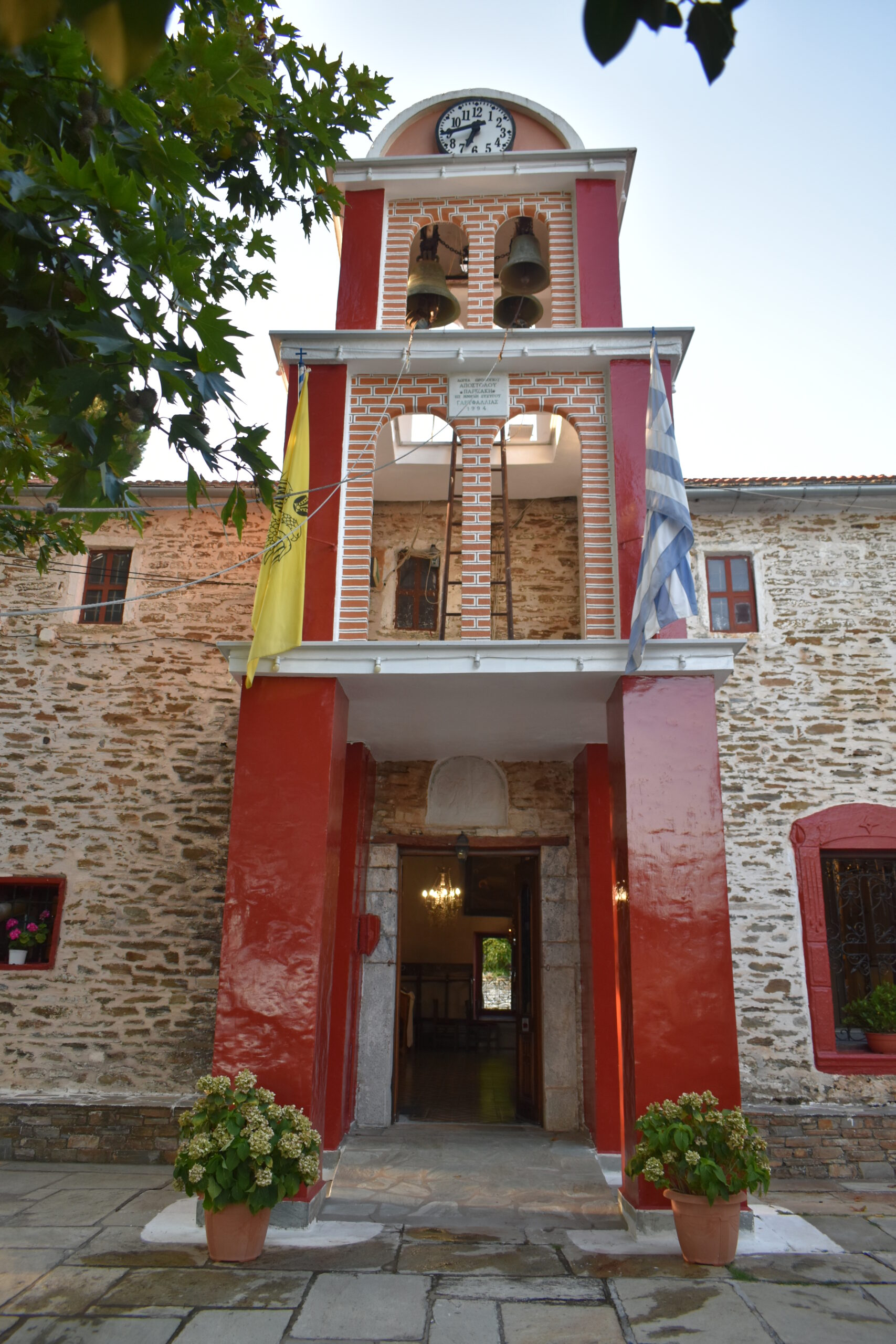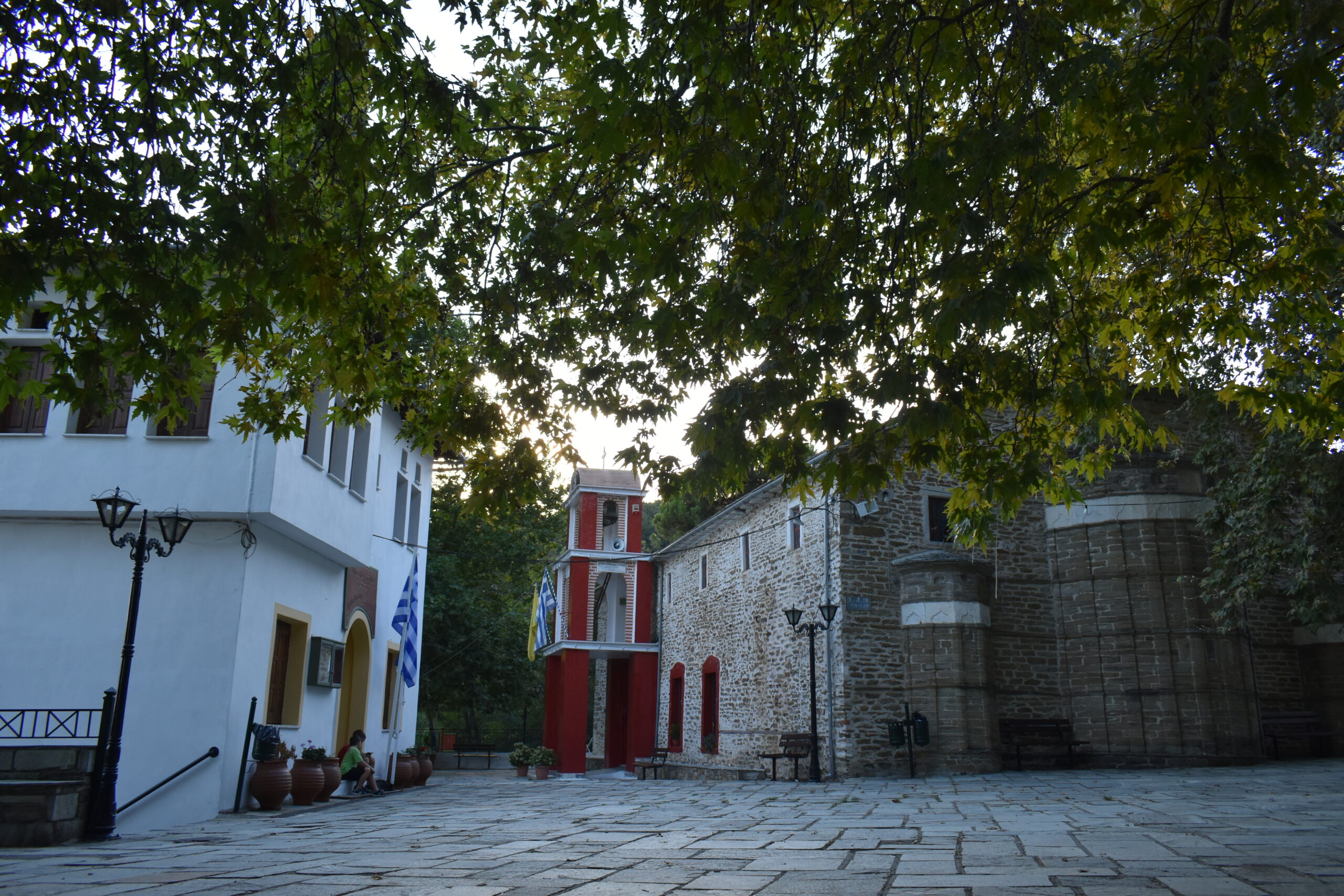 Αυτή είναι η αφετηρία και κατάληξη μιας ενδιαφέρουσας επίσκεψης στους Αφέτες, αφού αφήνοντας το αυτοκίνητο στο μεγάλο υπαίθριο parking στην είσοδο του χωριού, σε λίγα μόλις μέτρα θα βρεθείτε κάτω από τα σκιερά, αιωνόβια πλατάνια της Πλατείας Αγάπης. Εδώ βρίσκεται το κοινοτικό κτήριο, αλλά και η πανέμορφη εκκλησία του χωριού, ο Άγιος Ιωάννης Πρόδρομος, που κεντρίζει αμέσως την προσοχή με το συνδυασμό του έντονου κόκκινου χρώματος και του πέτρινου εξωτερικού της. Χτισμένος το 1743 από δωρεές 30 χωρικών, ο τρίκογχος ναός οφείλει την τωρινή του μορφή στον Ηπειρώτη μάστορα Δήμο Ζαπανιώτη, που τον ανακατασκεύασε το 1802, όπως μας πληροφορεί ανάγλυφη, εντοιχισμένη πλάκα αριστερά του καμπαναριού. Στο εσωτερικό της θα θαυμάσετε το επιχρυσωμένο, ξυλόγλυπτο τέμπλο, ενώ απέναντι από την κεντρική της είσοδο και το κωδονοστάσιο με το ρολόι, ένα μαρμάρινο μνημείο τιμά τους κατοίκους του χωριού που έδωσαν τη ζωή τους για την πατρίδα.