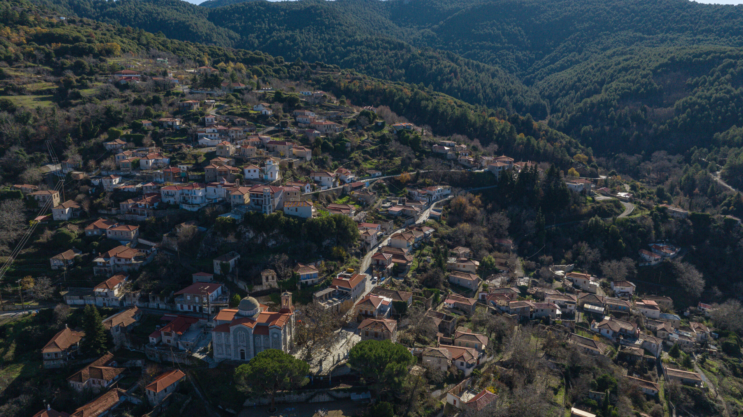 Το χωριό είναι ιδιαίτερα γραφικό, γεμάτο πέτρινα πυργόσπιτα, ως επί το πλείστον δίπατα, με αυστηρές, λιτές γραμμές που όμως μαρτυρούν πως στην εποχή τους υπήρξαν ξεχωριστά αρχοντικά. Αυτό φαίνεται στα περίτεχνα σιδερένια κάγκελα των μικρών μπαλκονιών, στα φουρούσια, στις κεντρικές εισόδους και στις περίκλειστες αυλές τους. Ανάμεσά τους ξεπροβάλλουν και λίγα νεοκλασικά με τα χαρακτηριστικά ακροκέραμα.