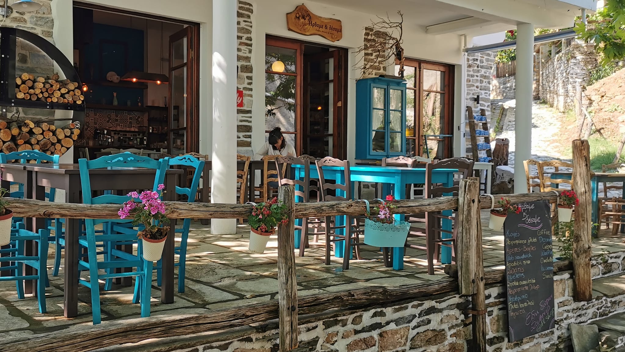 Οικογενειακή ταβέρνα πάνω στην πλατεία του χωριού, η οποία εκτός από τη θαυμάσια, ανεμπόδιστη θέα φημίζεται για τα καταπληκτικά ψητά της: ζουμερά κρέατα στη σούβλα, τόσο καλοψημένα που θα τα σκέφτεστε για πολύ καιρό, προσεγμένες φρέσκιες σαλάτες και πολύ καλά μαγειρευτά.