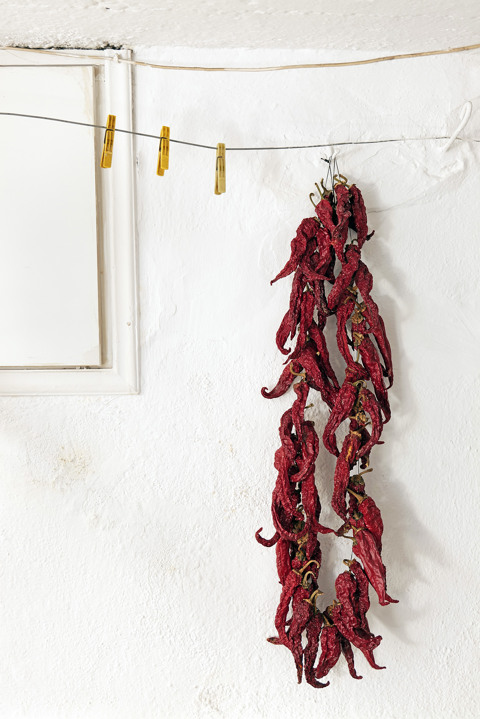 Πιπεριές κόκκινες αποξηραμένες, όχι Φλωρίνης καθώς το Π.Ο.Π. προϊόν είναι άλλο είδος, κρέμονται από καρφιά στον κάτασπρο ασβεστωμένο τοίχο. Τα λιτά, μεταλλικά εργαλεία για το κόψιμο του ζυμαριού φανερώνουν την απλότητα και την αγάπη προς την παράδοση. Ο φούρνος ζεσταίνεται, η μυρωδιά απλώνεται. Το κεσεδάκι με το γιαούρτι συμπληρώνει το γεύμα καλωσορίσματος μέσα στην απλή και πεντακάθαρη, χαμηλοτάβανη κουζίνα. Η περιοχή όλη αναμένει τη γιορτή της πίτας που λαμβάνει χώρα κάθε χρόνο, τελευταίο Σάββατο του Οκτωβρίου.