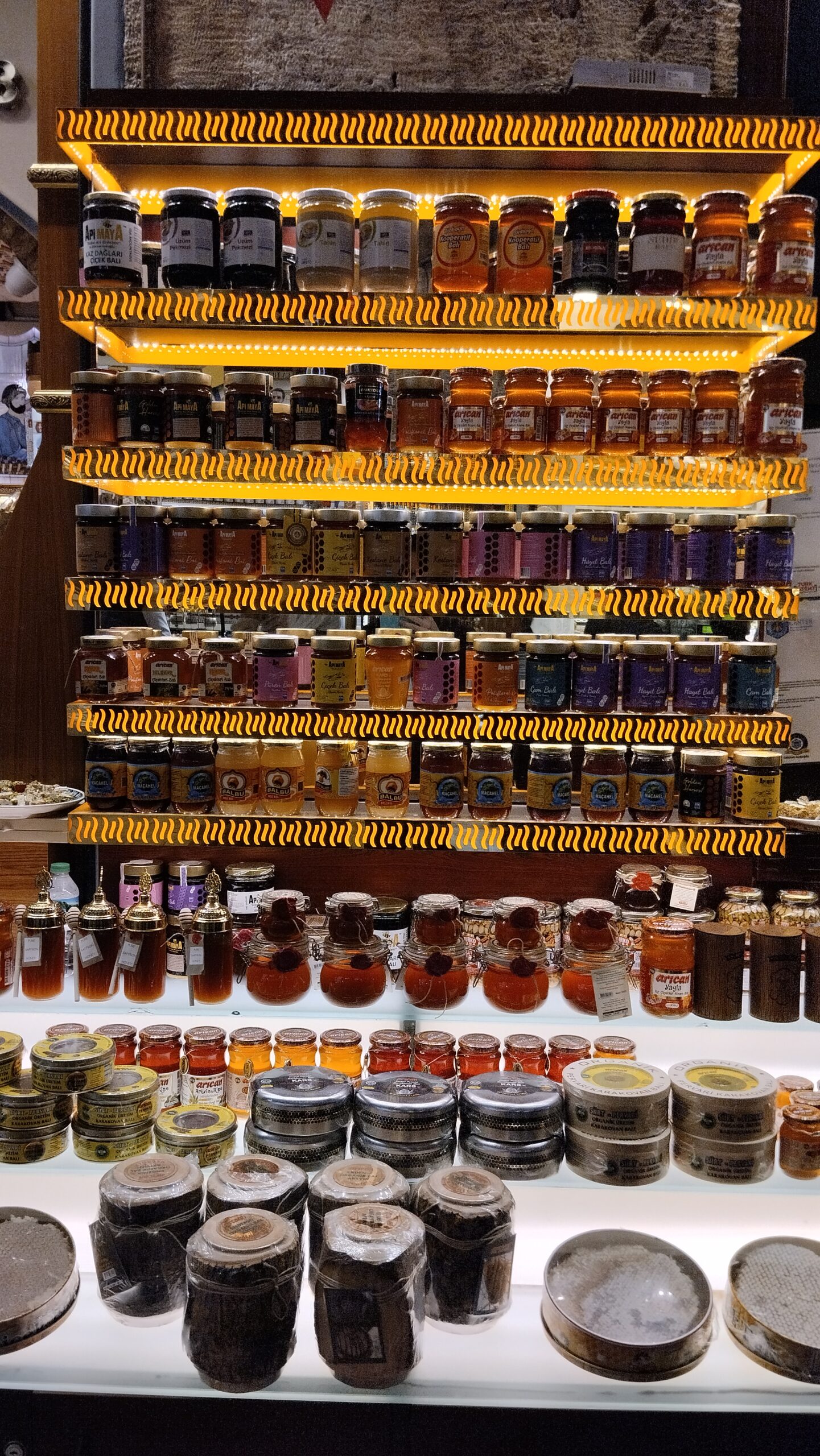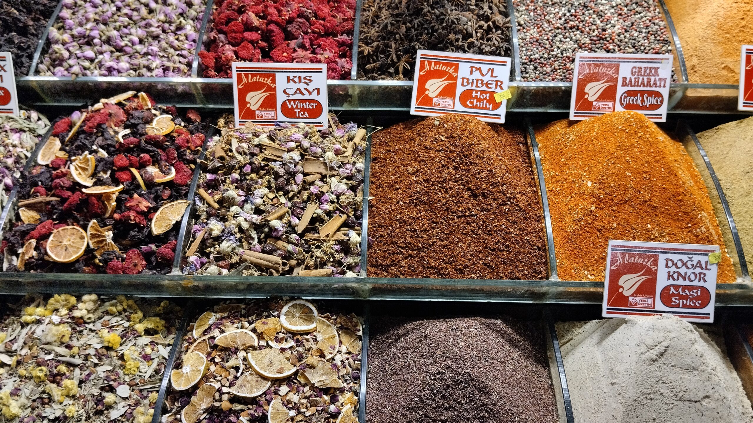 Λένε πως για να καταλάβεις αυτή την αγορά, πρέπει να μπορείς να ξεχωρίζεις τα μπαχαρικά από τις μυρωδιές τους. Δεν έχουν άδικο. Οι πάγκοι στο Καπαλί Τσαρσί είναι μια χρωματική πανδαισία γεύσεων και χρωμάτων που κανείς αναρωτιέται πώς μπορεί να μετουσιωθεί σε φαγητό. Μπαχαρικά, λουκούμια, αποξηραμένα φρούτα κάθε λογής, καφές και τσάι σε όποια γεύση τραβάει ο νους σας γεμίζουν τα τσουβάλια και τους πάγκους στην αγορά.