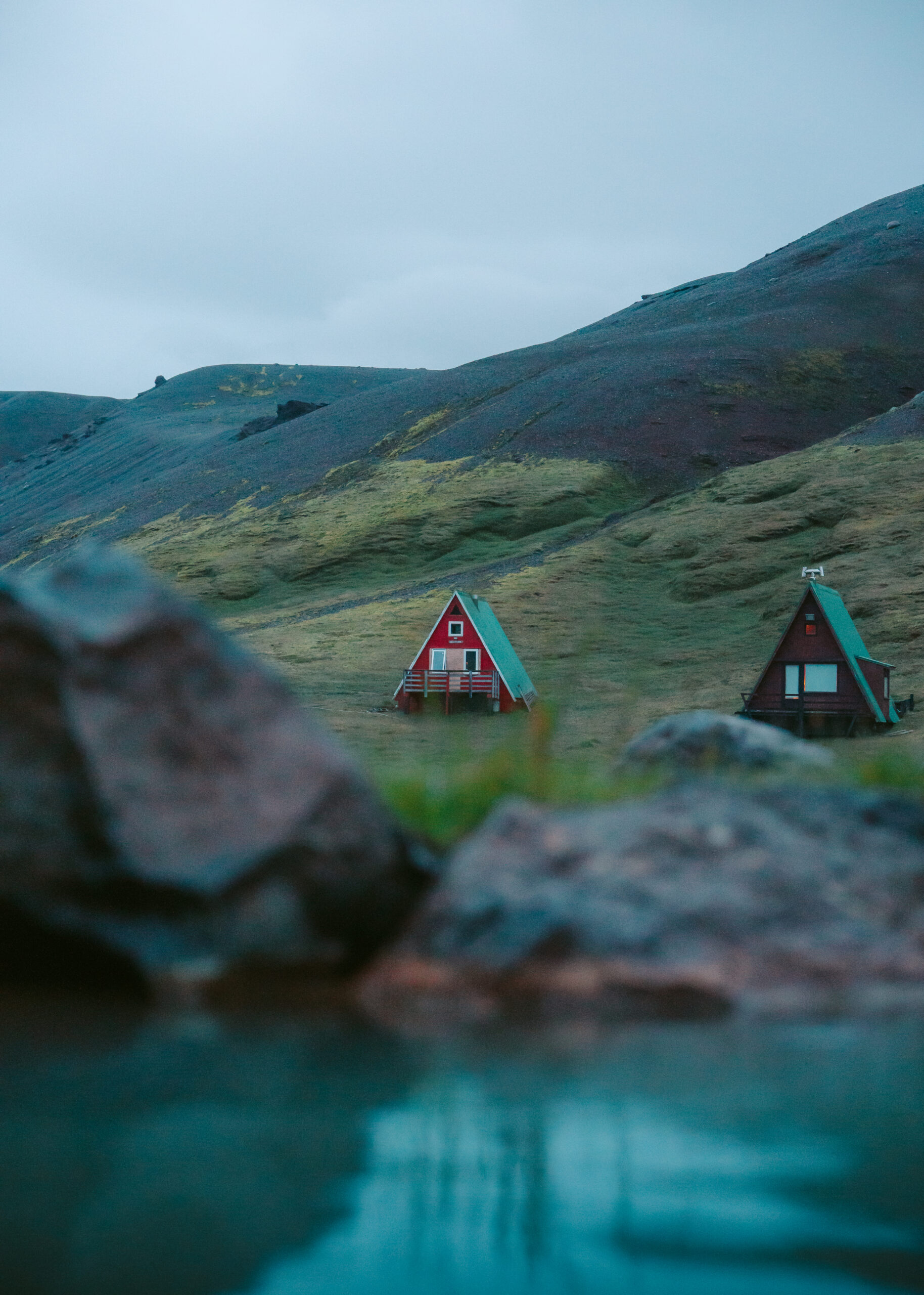 Ένα μικρό ξύλινο σπιτάκι, με χαραγμένα σχέδια και γράμματα που οδηγούν το μυαλό σε κάποια άλλη εποχή, τότε που οι Βίκινγκ εξερευνούσαν τον τόπο αυτό, ενώνει αυτές τις 3 αυθεντικές, θερμές πηγές. H ηρεμία που αιωρείται αντισταθμίζει την ένταση της ημέρας. Όσο μεγαλύτερη αντίθεση υπάρχει μεταξύ της εξωτερικής θερμοκρασίας με αυτής του νερού τόσο καλύτερη γίνεται και η εμπειρία.
