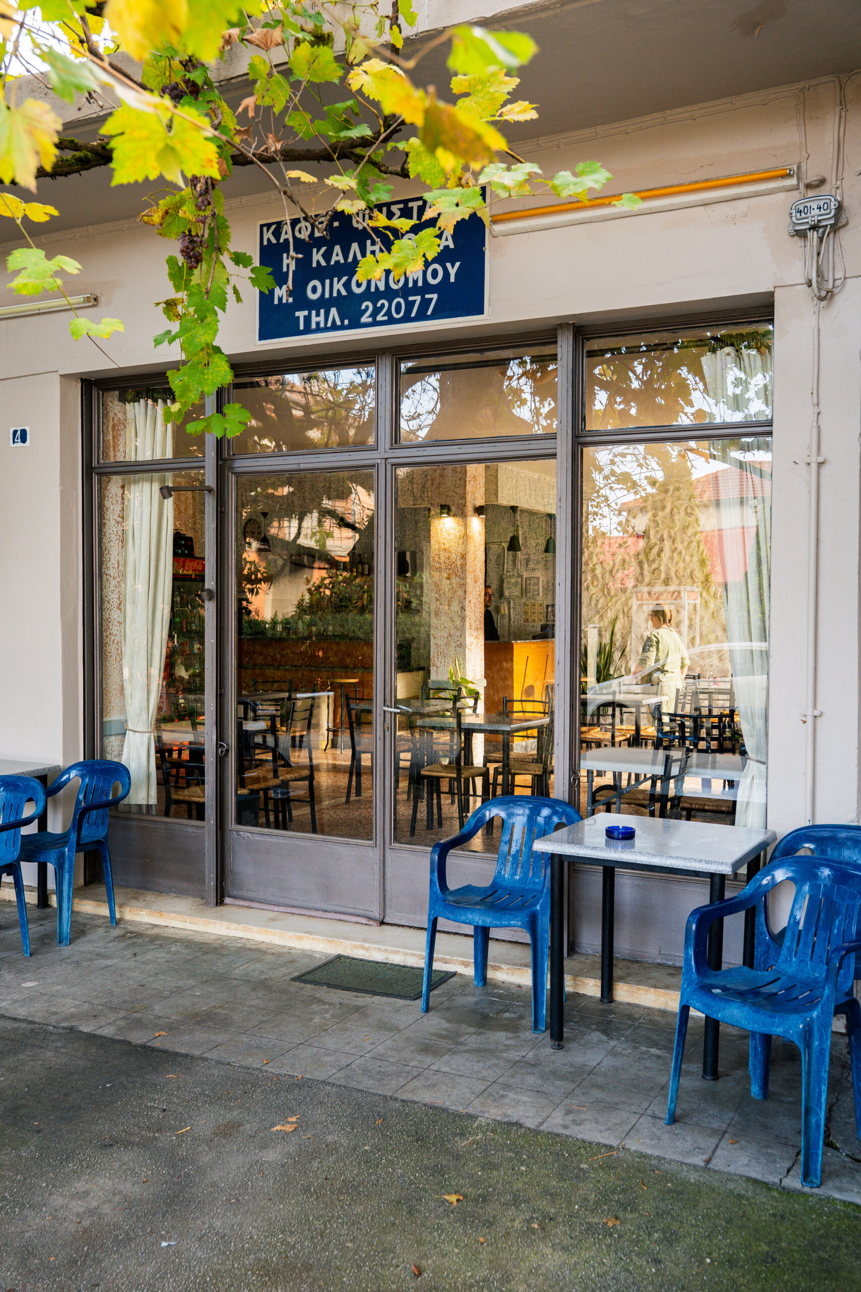 Φτάνουμε το πρωί στην κεντρική πλατεία, όπου ο Μάνθος και η Μαριάννα σερβίρουν ήδη καφέδες στους ντόπιους. Το καφενείο τους, ανοιχτό από τις 8 το πρωί μέχρι αργά το βράδυ, λειτουργεί ως το καθημερινό σημείο συνάντησης του χωριού. «Μείναμε μόνιμα εδώ», μας λέει η Μαριάννα, ενώ φέρνει τον ελληνικό καφέ που παραγγείλαμε.