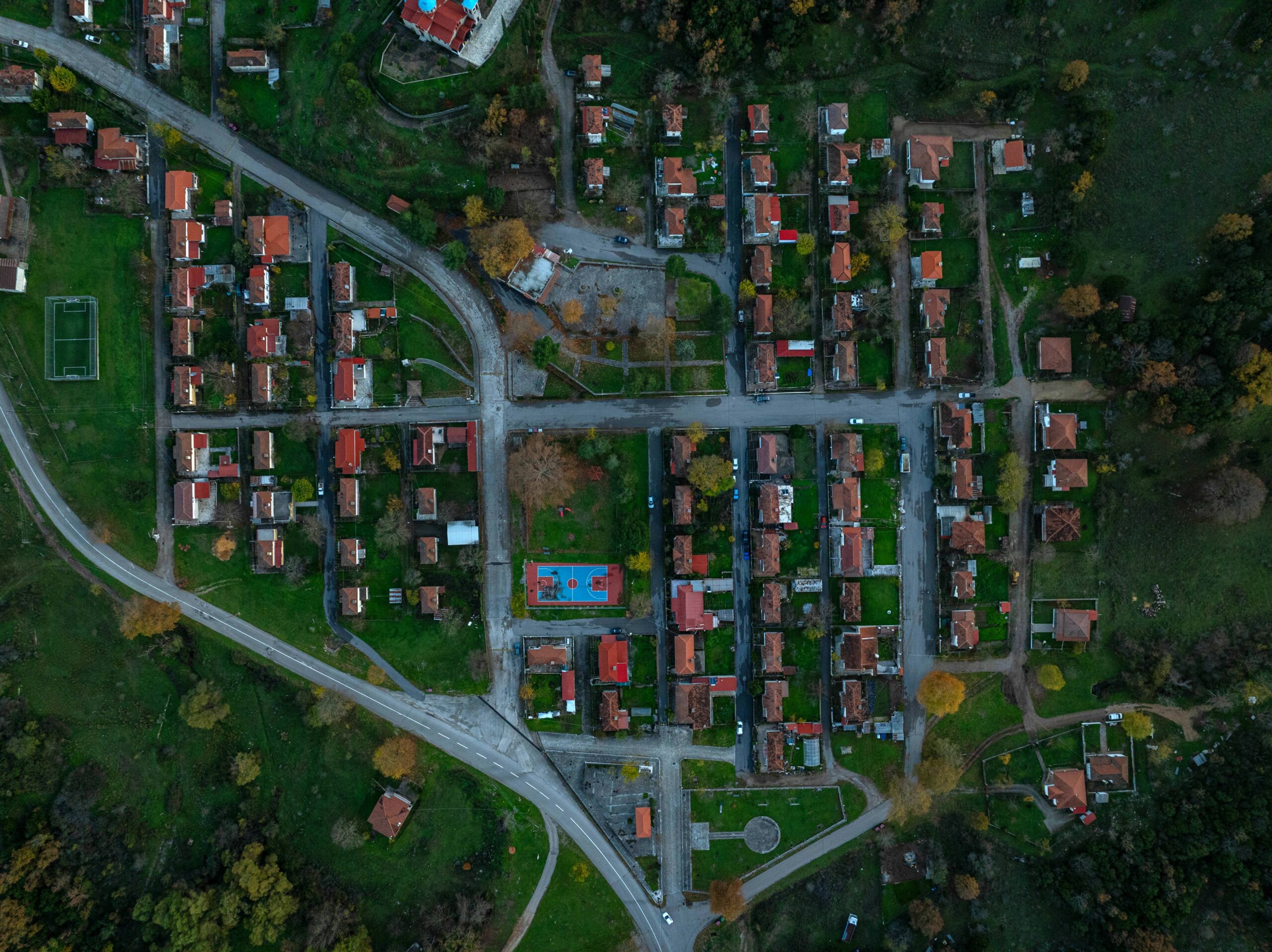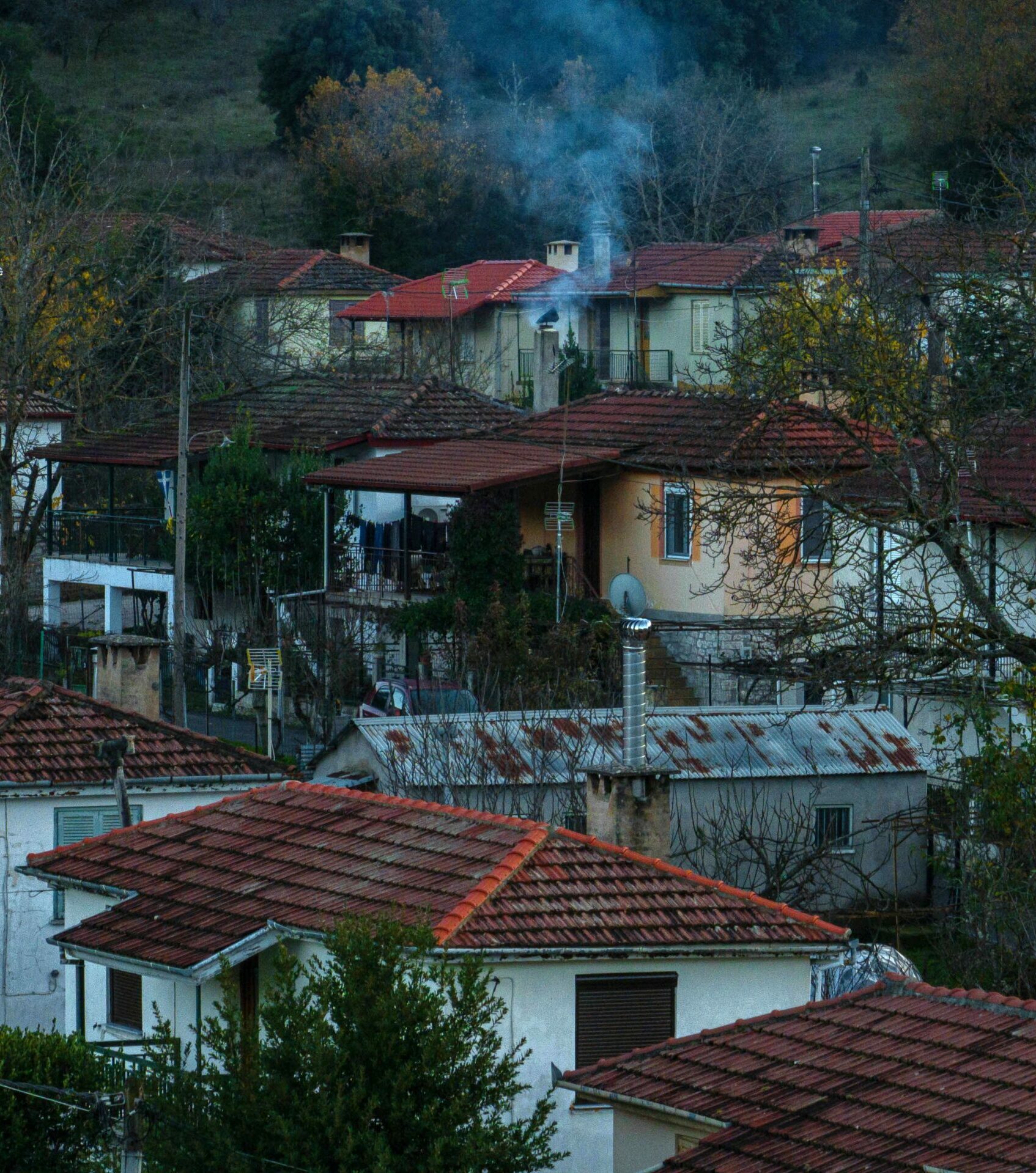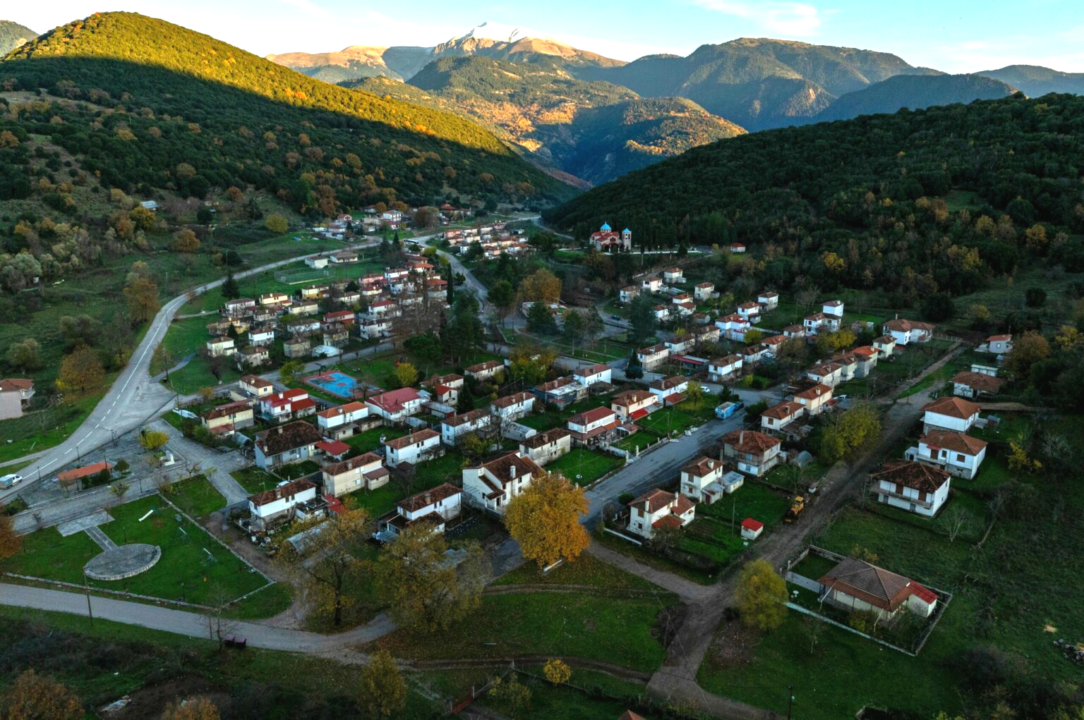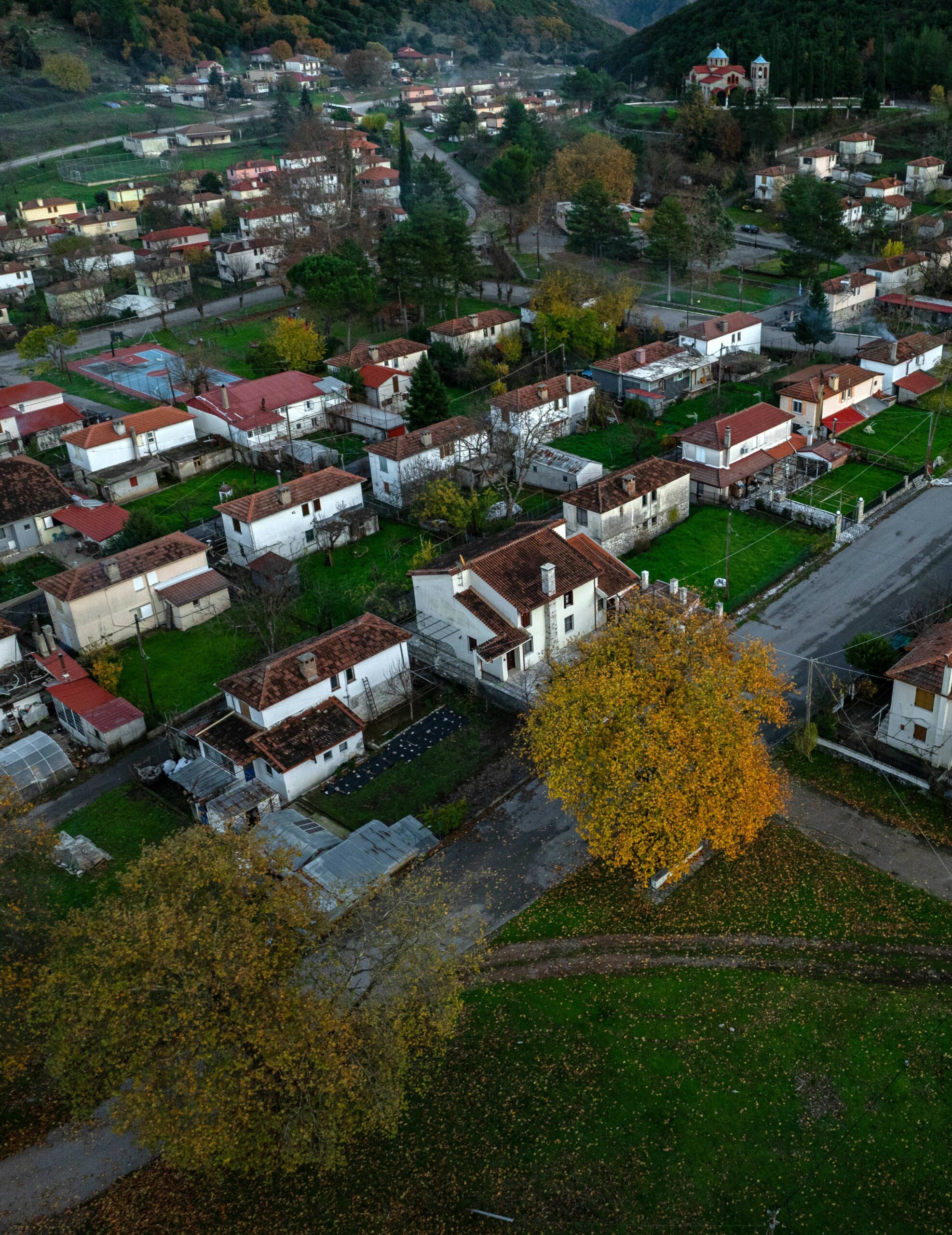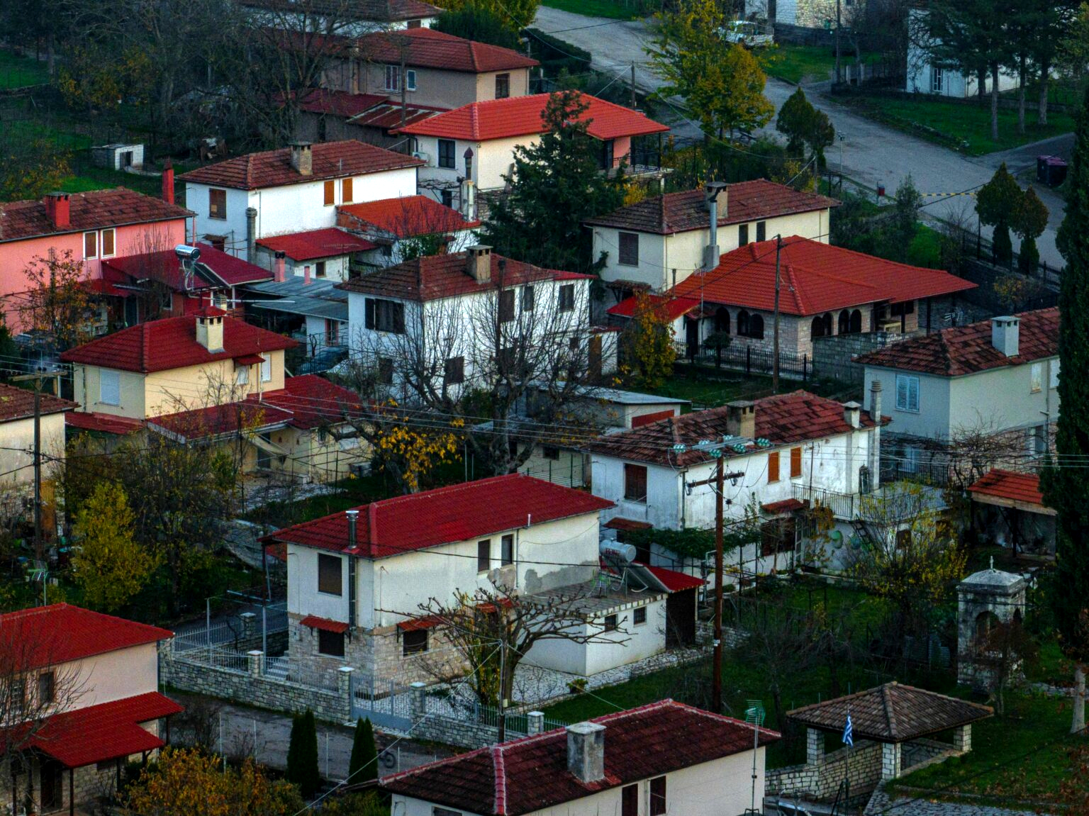 Οι φωτογραφίες από το drone θα μπορούσαν να είναι από κάποιον οικισμό της Μεσοδυτικής Αμερικής ή από ένα καινούριο προάστιο στην Αυστραλία. Το σχέδιο είναι αυστηρό, οι γωνίες ορθές, οι δρόμοι παράλληλοι. Στο πλαίσιο του ταξιδιού μας στην Ευρυτανία, επιστρέφουμε από τη Φραγκίστα προς το Καρπενήσι.