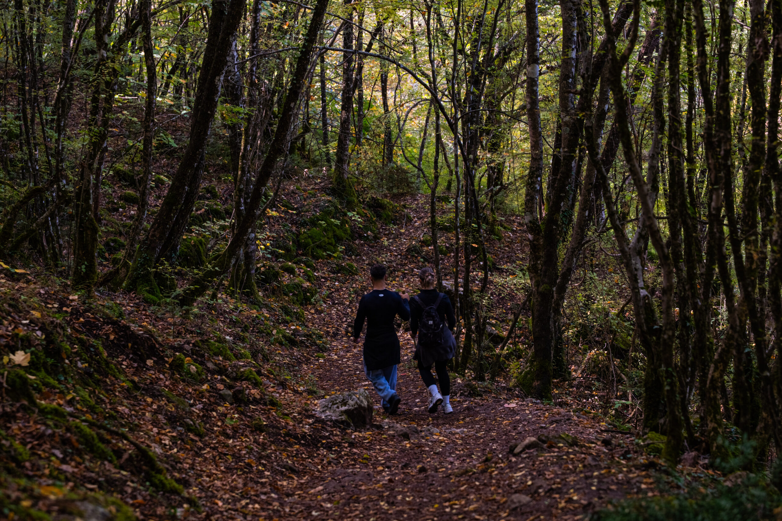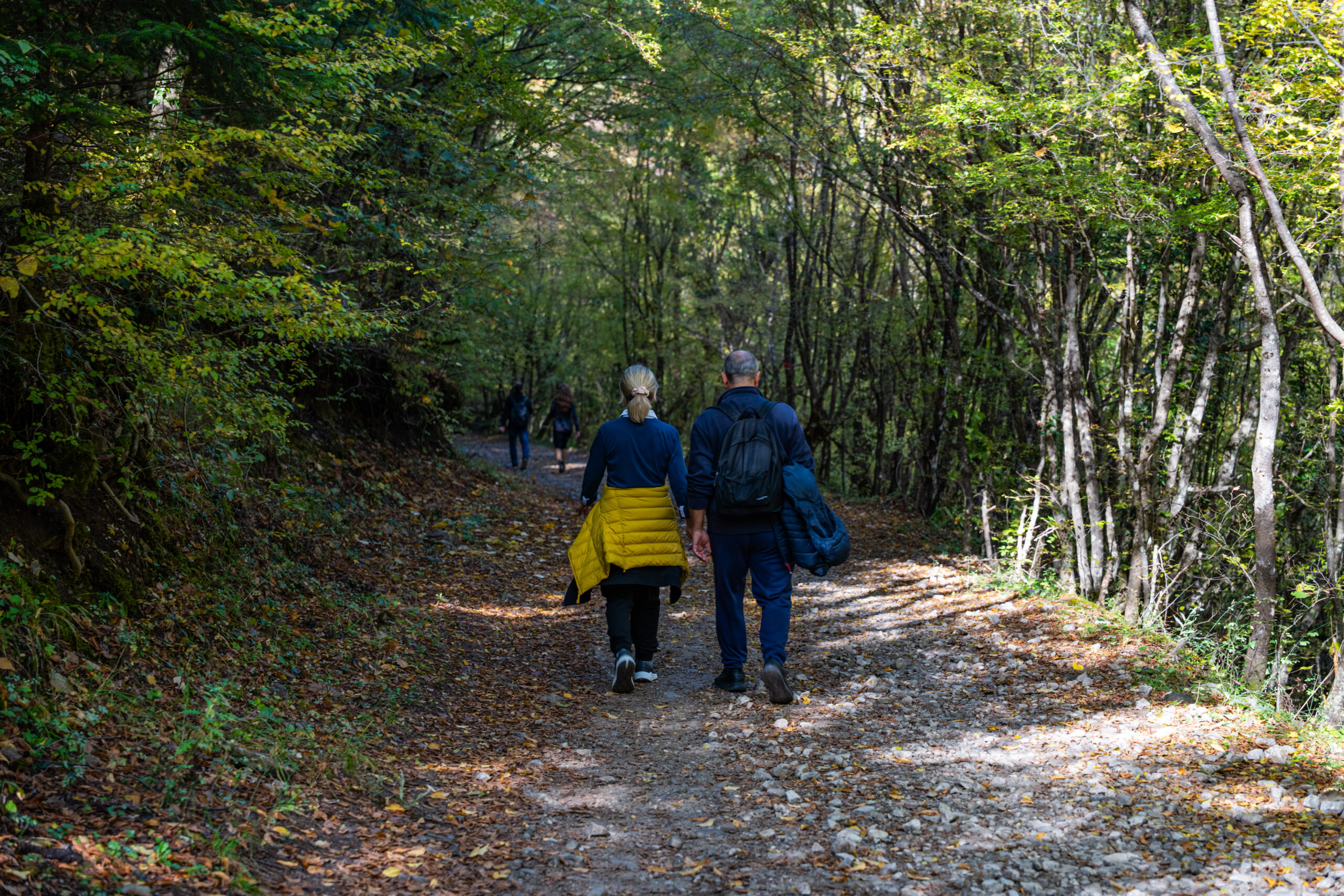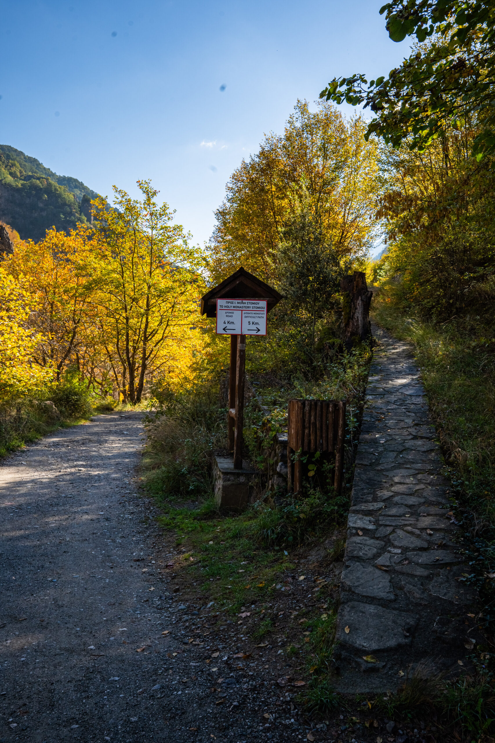 Μετά από περίπου σαράντα λεπτά παράλληλα με τον ποταμό, το μονοπάτι στρίβει και αρχίζει να ανηφορίζει. Η ανάβαση γίνεται μέσα από δάσος, απομακρύνοντας σταδιακά τον περιπατητή από τον Αώο. Εδώ, το Epirus Trail συναντά το παλαιότερο μονοπάτι, και η επιλογή είναι προφανής. Το παλιό μονοπάτι προσφέρει μια πιο άμεση αίσθηση της άγριας αρχιτεκτονικής της χαράδρας.