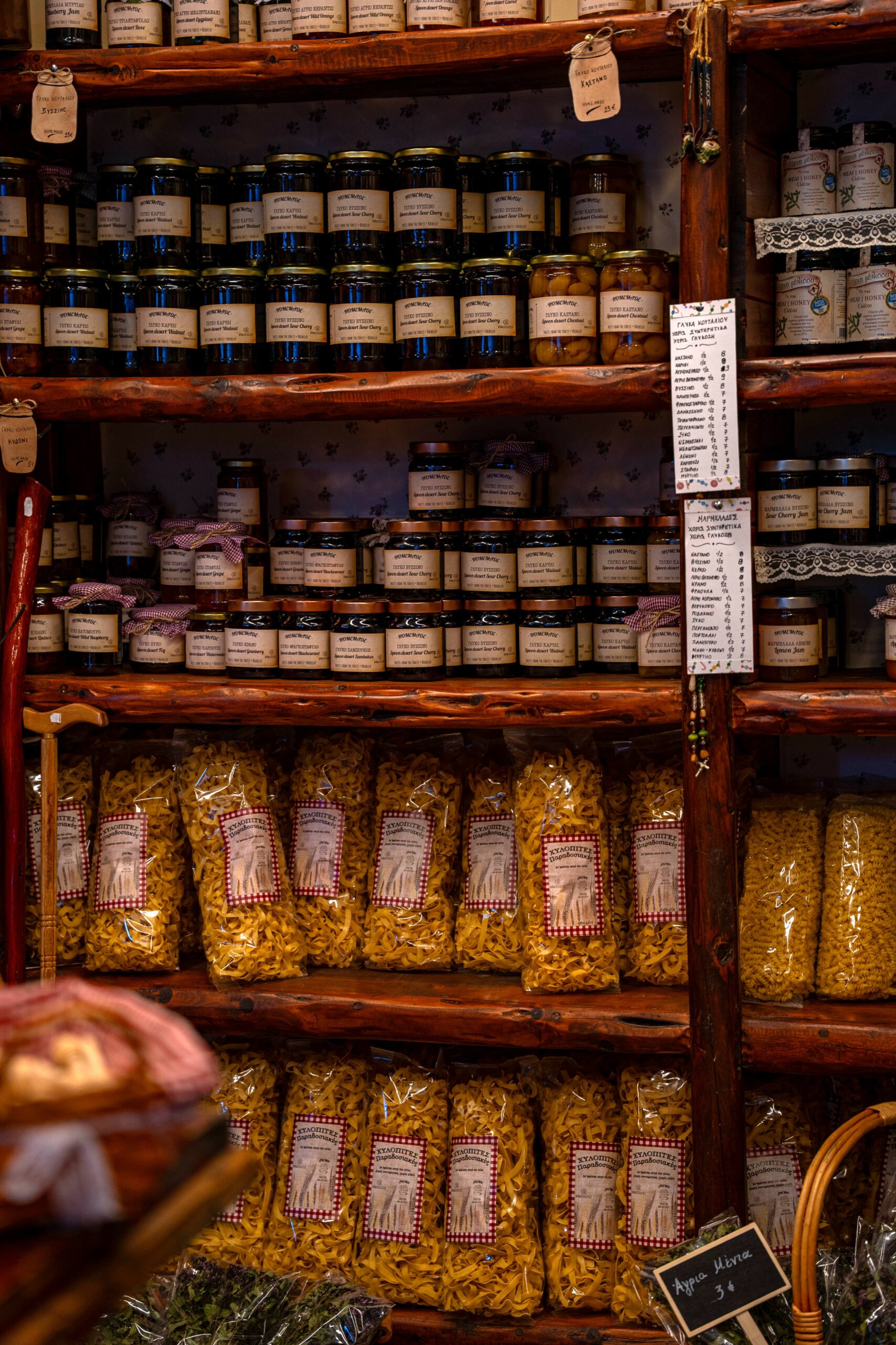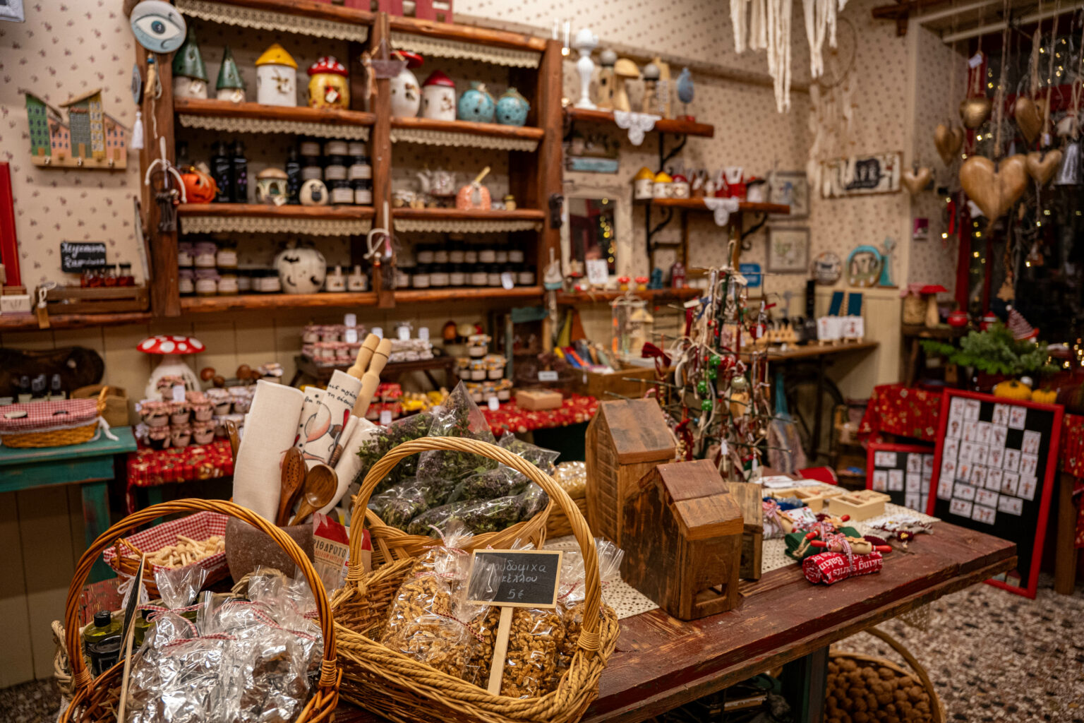 Στην πλατεία υπάρχουν επιλογές για φαγητό. Εμείς καθίσαμε στης Λένας. Νόστιμα ψητά, αγριογούρουνο στιφάδο, λεμονάτο κατσικάκι στη γάστρα, μοσχαράκι γιουβέτσι στο πήλινο. Πίτες με άγρια χόρτα και χειροποίητο φύλλο. Για επιδόρπιο, γαλακτομπούρεκο με αυγά και γάλα του χωριού, η γλυκιά κατάληξη ενός γενναιόδωρου γεύματος. Πριν φύγεις, προμηθεύεσαι εκλεκτά προϊόντα: πρασάτα λουκάνικα, τσαλαφούτι, ένα κρεμώδες τοπικό τυρί, μέλι ελάτης σκούρο και πυκνό, τσάι του βουνού, τσίπουρο και λικέρ μούρο.