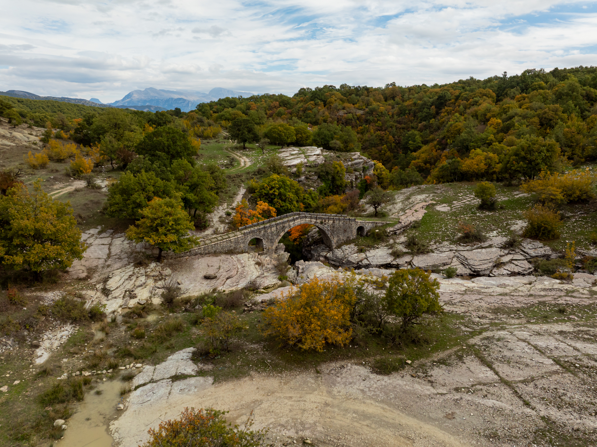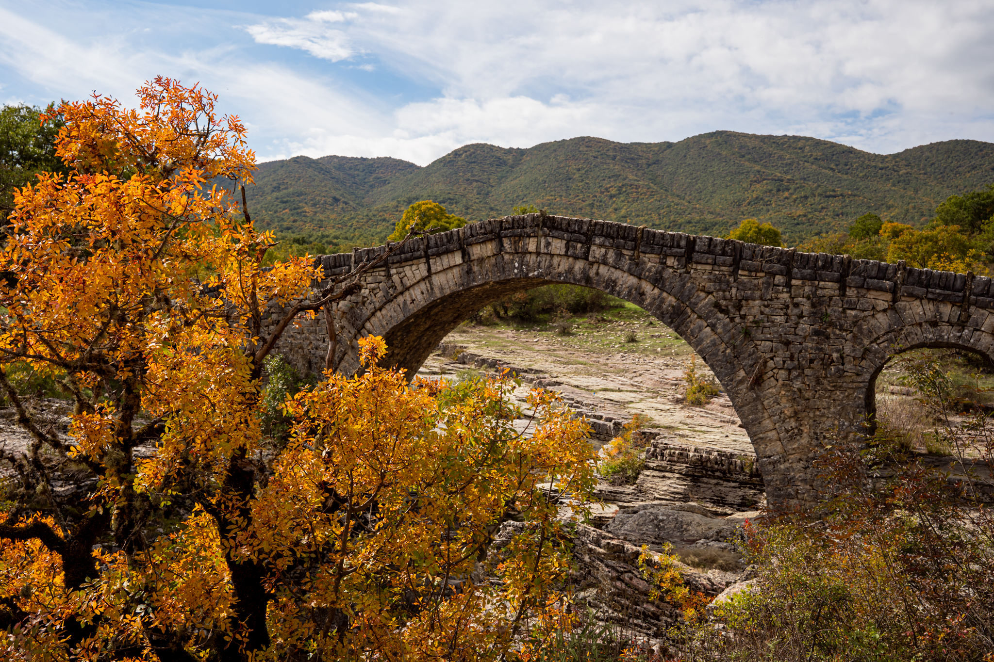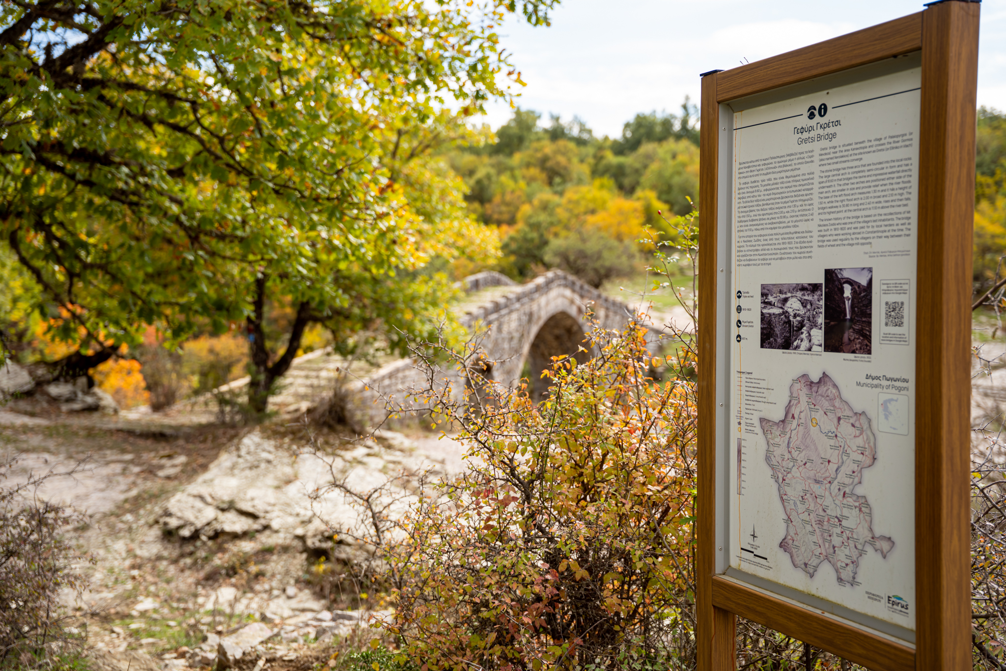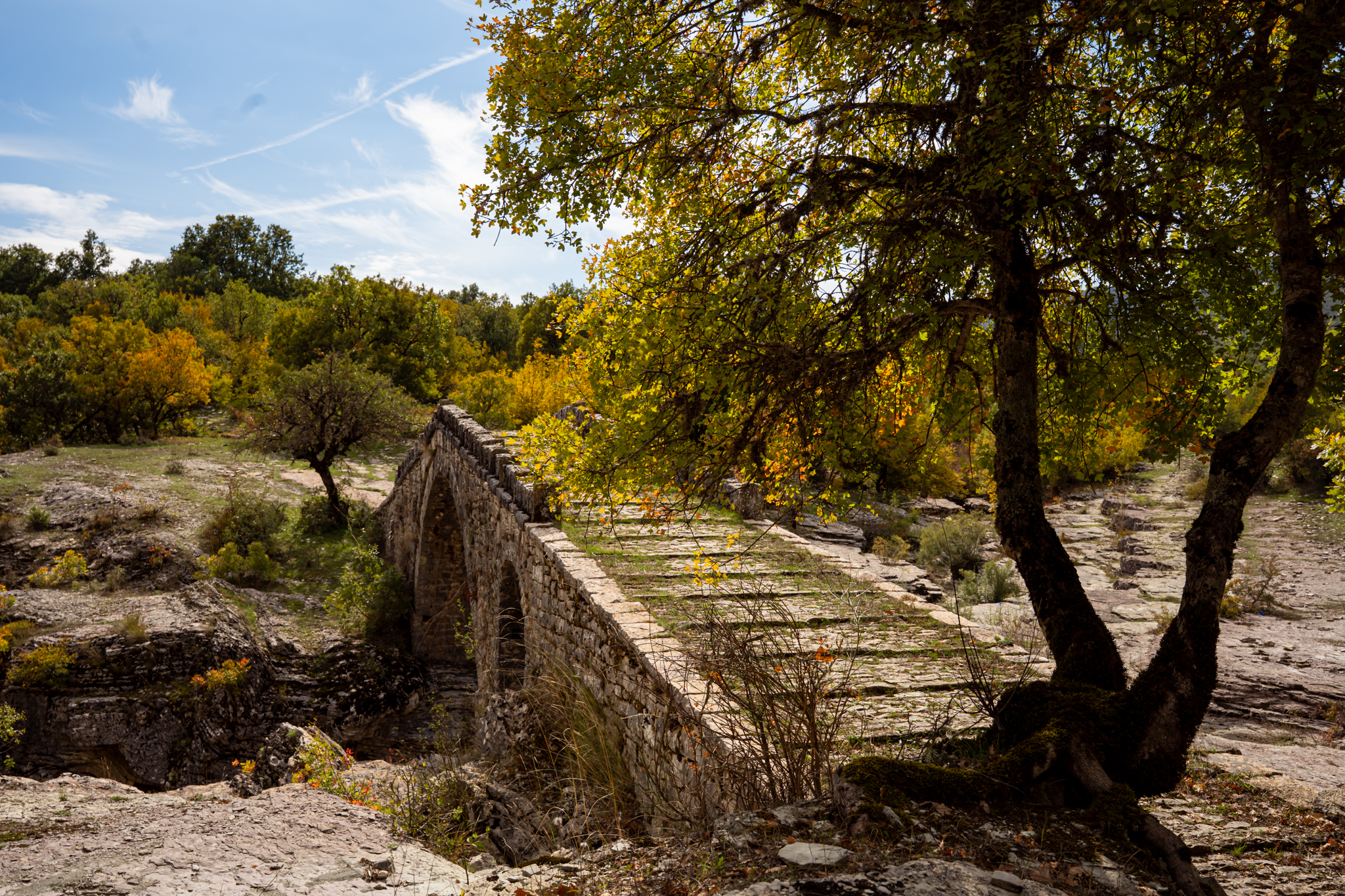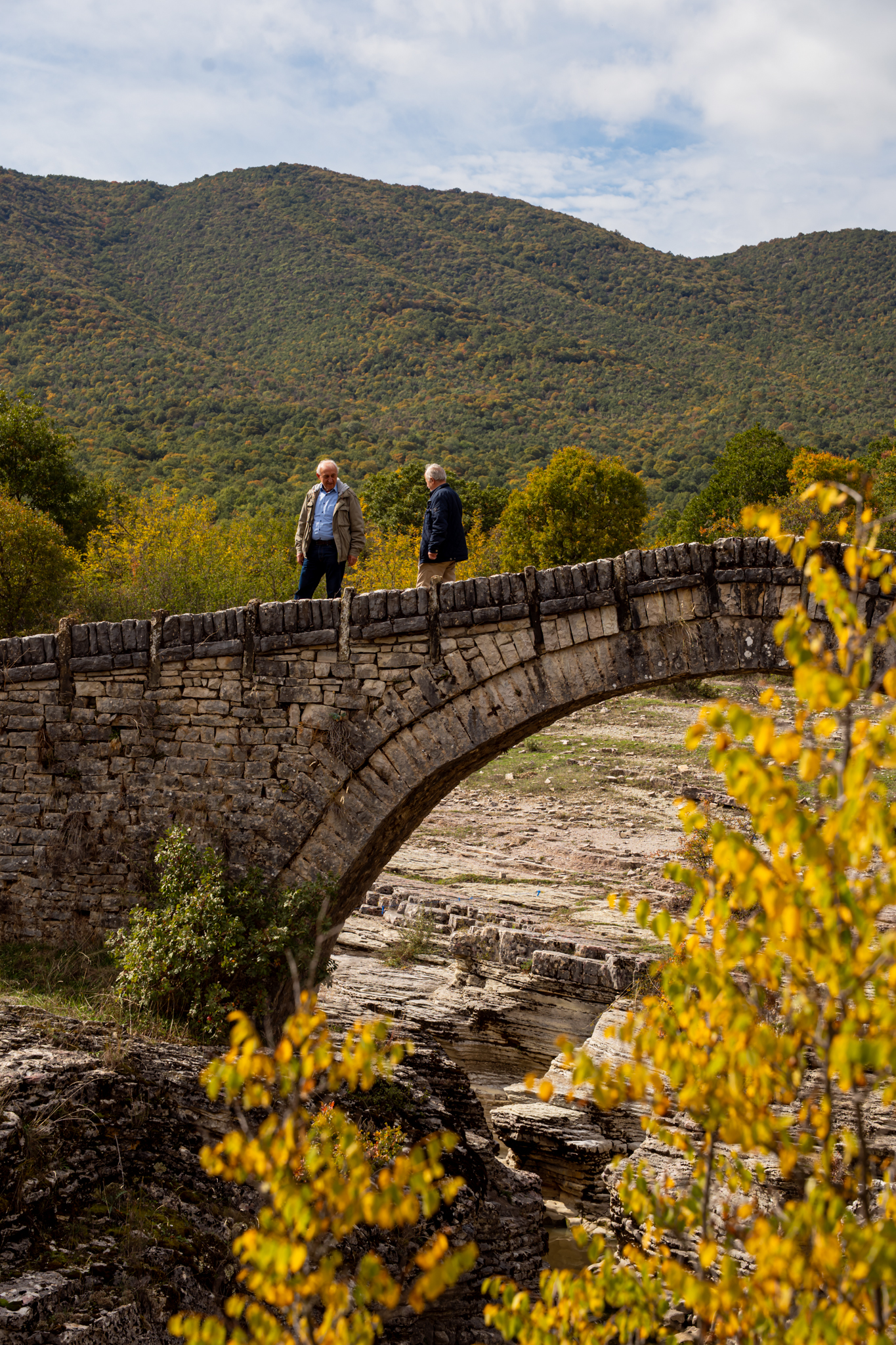 Είμαστε μέσα σε δάσος βελανιδιών, 850 μέτρα πάνω από τη θάλασσα, κάπου στα σύνορα με την Αλβανία, και ο κτηνοτρόφος που συναντάμε είναι η ζωντανή σύνδεση με το μνημείο που πάμε να δούμε. Ένα γεφύρι που οι πρόγονοί του χρηματοδότησαν πριν από δύο αιώνες και που παραμένει άγνωστο ακόμα και στους περισσότερους λάτρεις των ορεινών τοπίων της Ηπείρου.