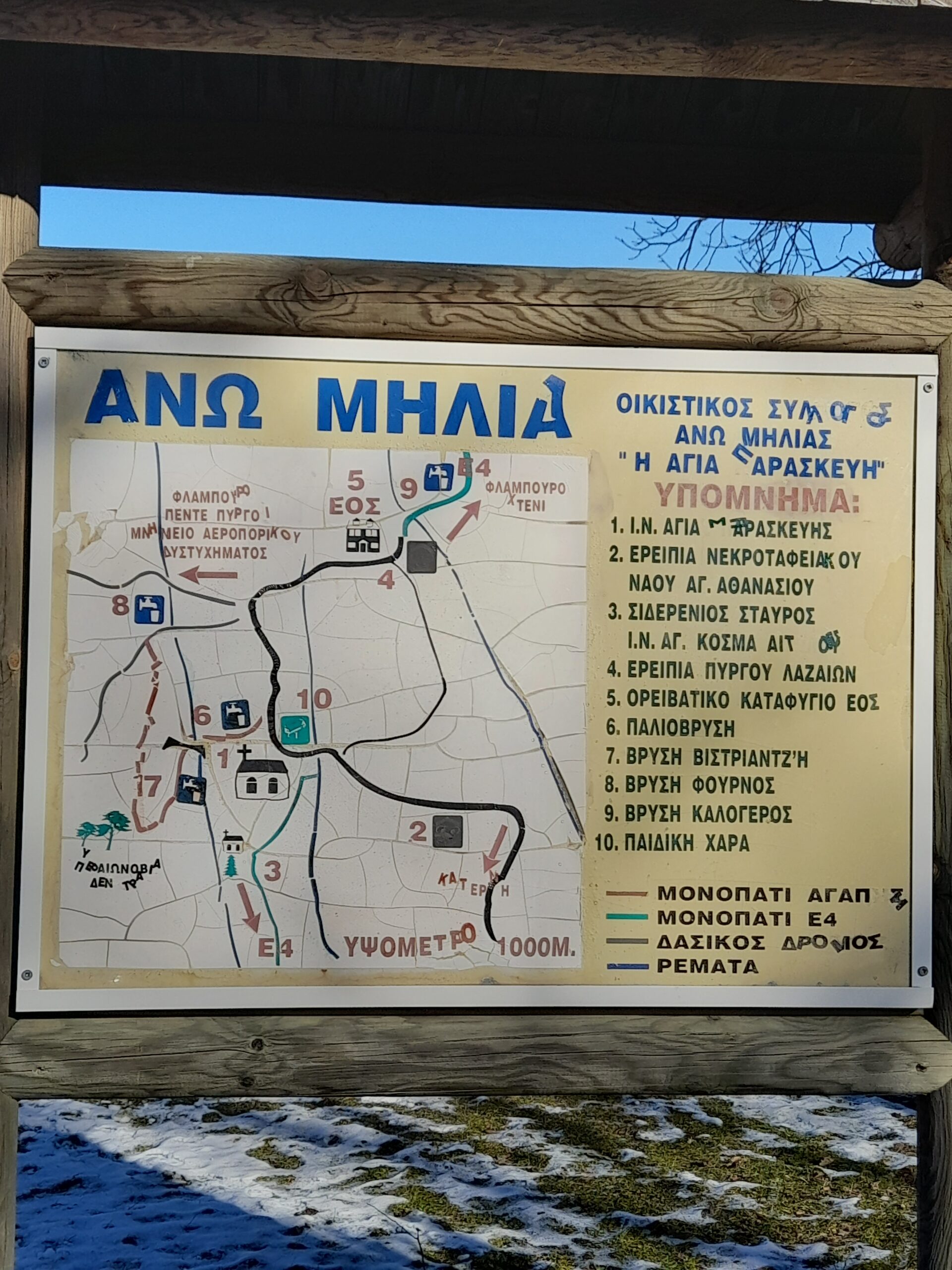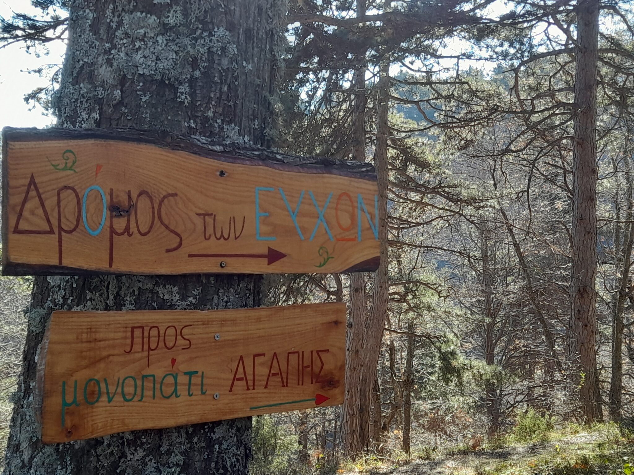 Τα μονοπάτια της «Αγάπης» και των «Ευχών» ξεκινούν από διαμορφωμένη είσοδο Ν.Α. της εκκλησίας της Αγίας Παρασκευής. Είναι απολύτως βατά για όλη την οικογένεια. Τα μονοπάτια αυτά κατασκευάστηκαν με πρωτοβουλία του Πολιτιστικού Συλλόγου του χωριού και προσελκύουν επισκέπτες – λατρεις του βουνού και της πεζοπορίας- από την Πιερία, την Θεσσαλονίκη, την Λάρισα κ.α.
