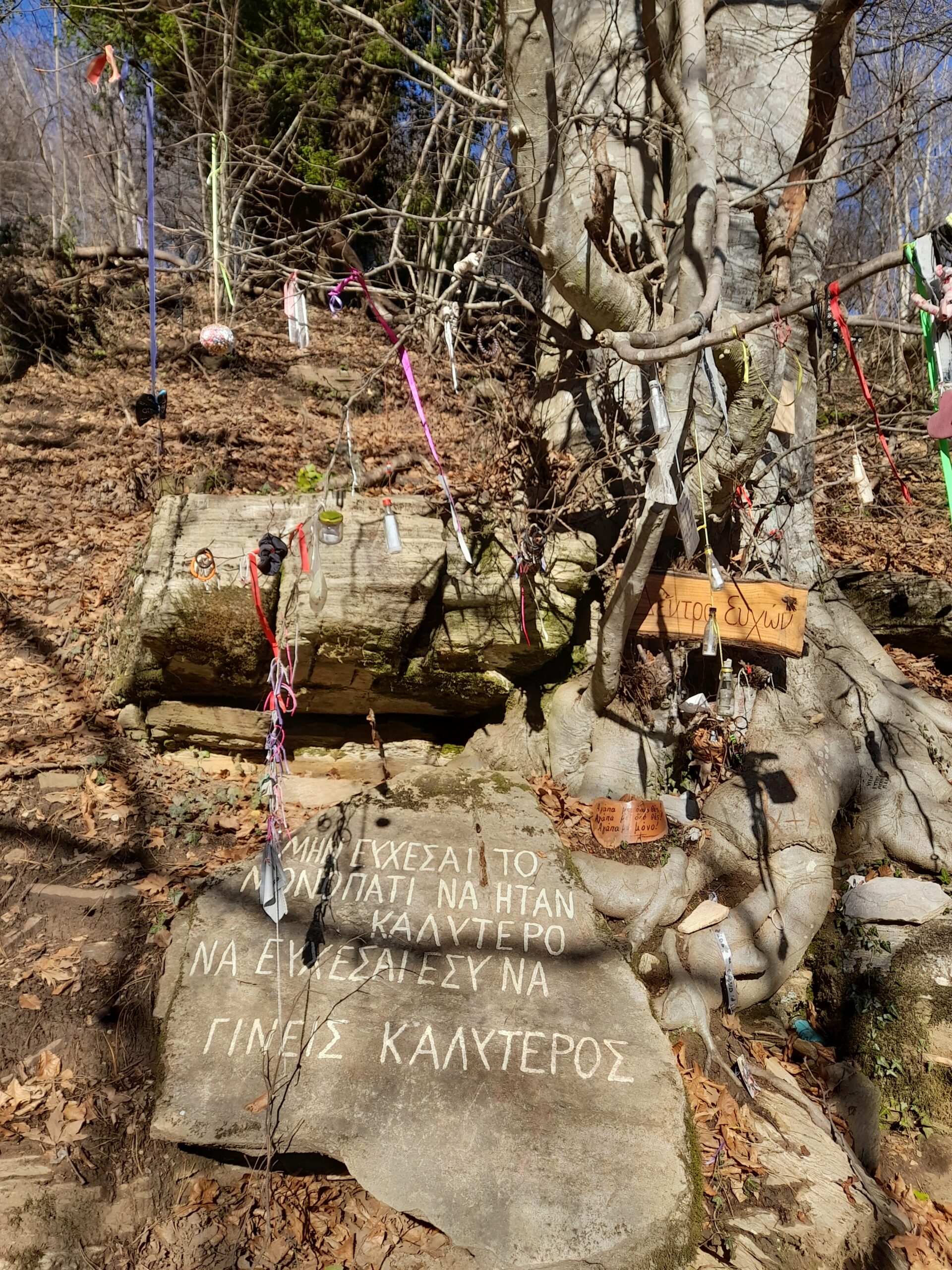 Στο μονοπάτι των Ευχών, υπάρχει ένα δέντρο στο οποίο οι επισκέπτες κρεμούν μια κορδέλα ή κλωστή ως προσωπική ευχή. Η διαδρομή καταλήγει στο μικρό εκκλησάκι του Αγίου Κοσμά του Αιτωλού, με την υπέροχη θέα προς την ακτογραμμή και τα πεδινά χωριά της Πιερίας.