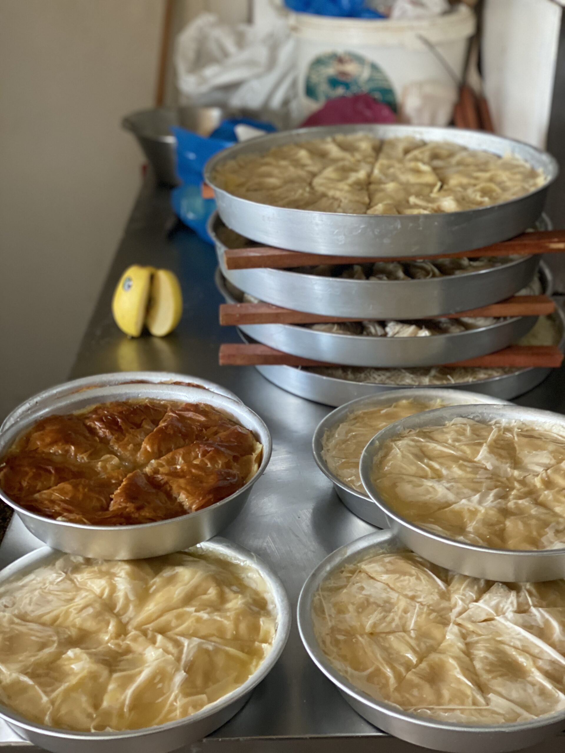 Ο Αντώνης, ήρεμος, μεθοδικός και ευγενής, όσο τυλίγει το φύλλο για ένα ταψάκι χανούμ μπουρέκ, μου μιλά για την διαδρομή του. Από οικογένεια προσφύγων και με γιαγιά Κωνσταντινουπολίτισσα, έμαθε την τέχνη του ζαχαροπλάστη στη Θεσσαλονίκη. Εδώ και 26 χρόνια, διατηρεί αυτό το μαγαζί στην πλατεία του χωριού, δεν σταματά στιγμή να πειραματίζεται και να τρατάρει τους επισκέπτες του χωριού με γλυκά γεμάτα με αγάπη. Φεύγω από το μαγαζί με τη μυρωδιά του φρέσκου βούτυρου και της καραμέλας να με κατακλύζει.