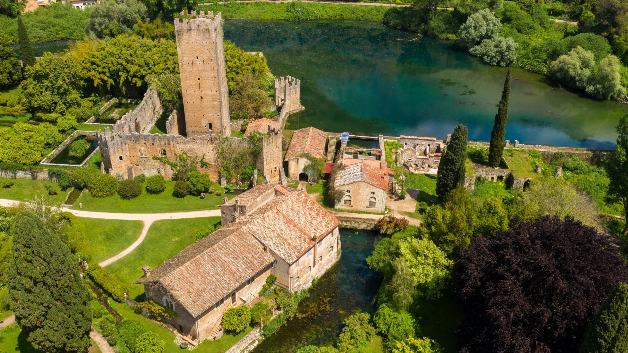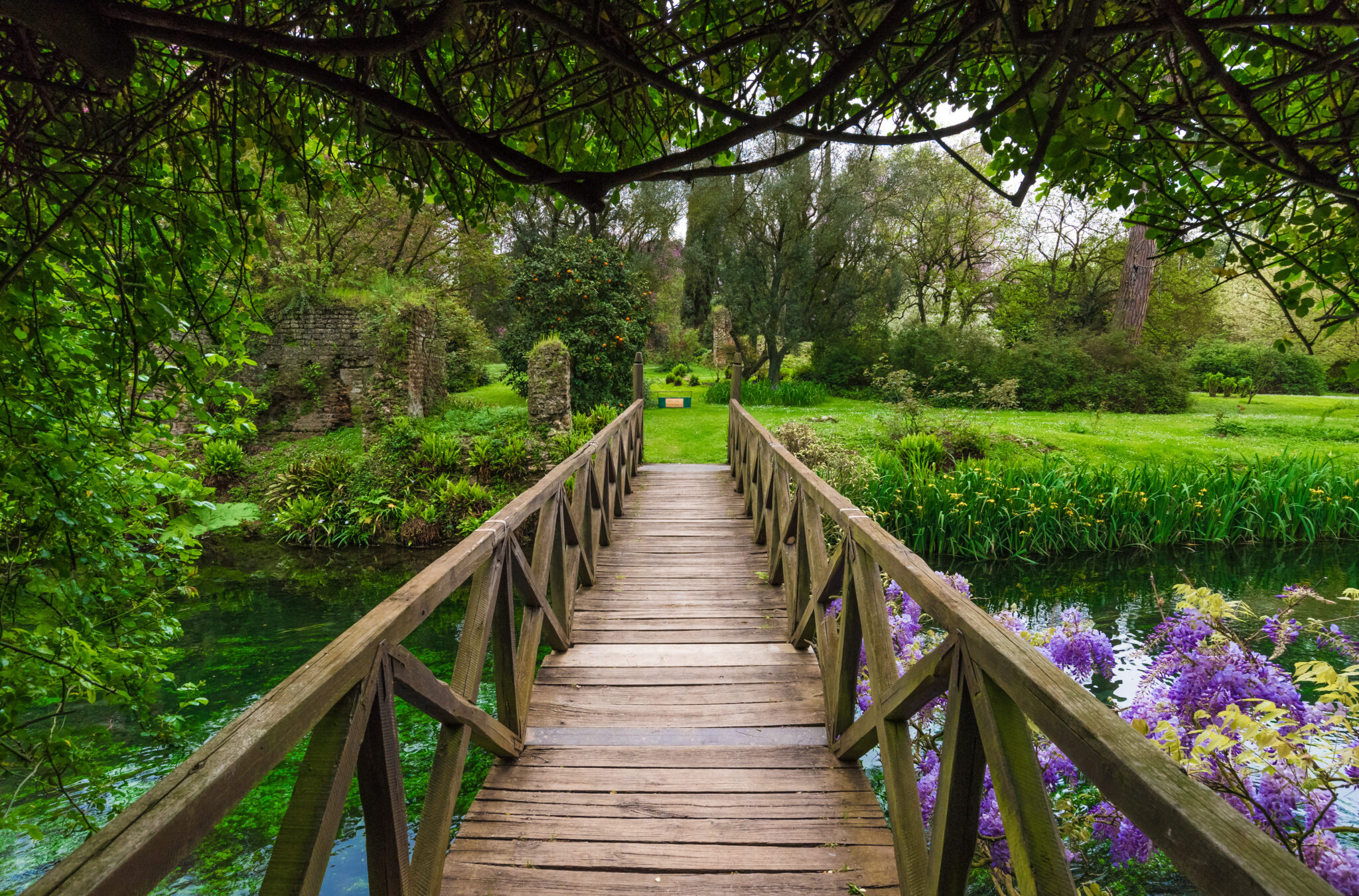 Ο αγαπημένος προορισμός των ερωτευμένων και λάτρεων της κηπουρικής απέχει μόλις 85 χιλιόμετρα -μιάμιση ώρα οδικώς- από το κέντρο της Ρώμης και διεκδικώντας τον τίτλο του πιο ρομαντικού κήπου στον κόσμο, σου κόβει την ανάσα με το που βρεθείς στην είσοδο των οχτώ εκταρίων που καλύπτει. Οι κήποι διαμορφώθηκαν στη θέση ενός ρωμαϊκού ναού προς τιμήν της θέας Νίνφα, προστάτιδας των υδάτινων πηγών, και ενός μεταγενέστερου μεσαιωνικού χωριού που αν και υπό σημαντική παπική επιρροή, αργότερα εγκαταλείφθηκε και ερειπώθηκε για αιώνες. Η γη παρέμεινε αναξιοποίητη ως τις αρχές του 20ου αιώνα, όταν το 1920, ο Roffredo Caetani – απόγονος της οικογένειας Caetani η οποία από το 1298 είχε στην ιδιοκτησία της το ακμάζον μεσαιωνικό χωριό- με τη συνδρομή της Βρετανίδας μητέρας του Ada Wilbraham, εισήγαγαν δέντρα από κάθε άκρη του κόσμου προκειμένου να δημιουργήσουν τους Κήπους Νίνφα. Ήταν όμως η Αμερικανίδα σύζυγός του Marguerite Chapin, εκείνη η οποία εμπλούτισε τους κήπους με λουλούδια, ενώ η κόρη τους Lelia, μια ταλαντούχα ζωγράφος, εργάστηκε πάνω στο σχέδιό τους, ολοκληρώνοντας αυτό το ολοζώντανο έργο τέχνης.
