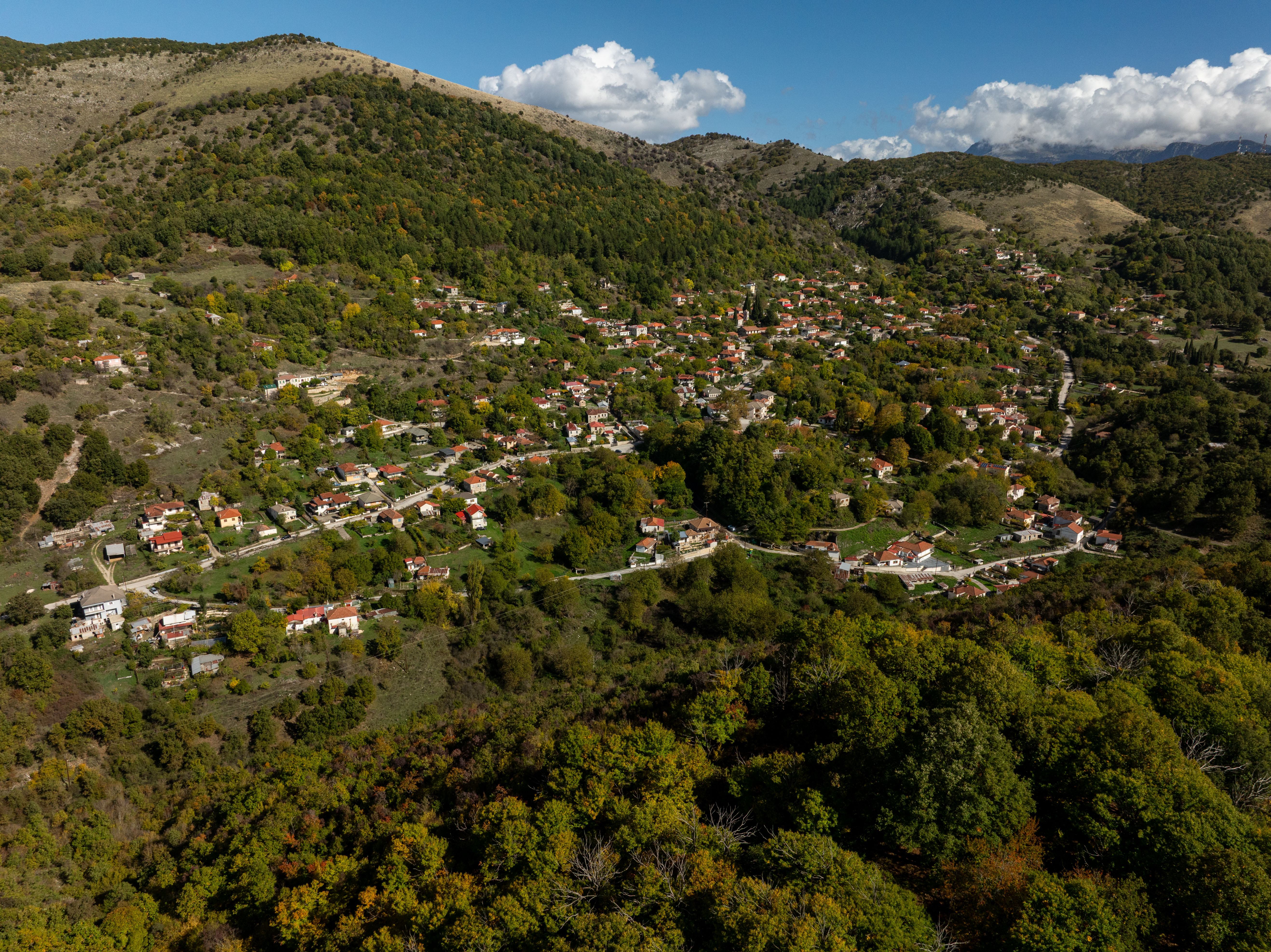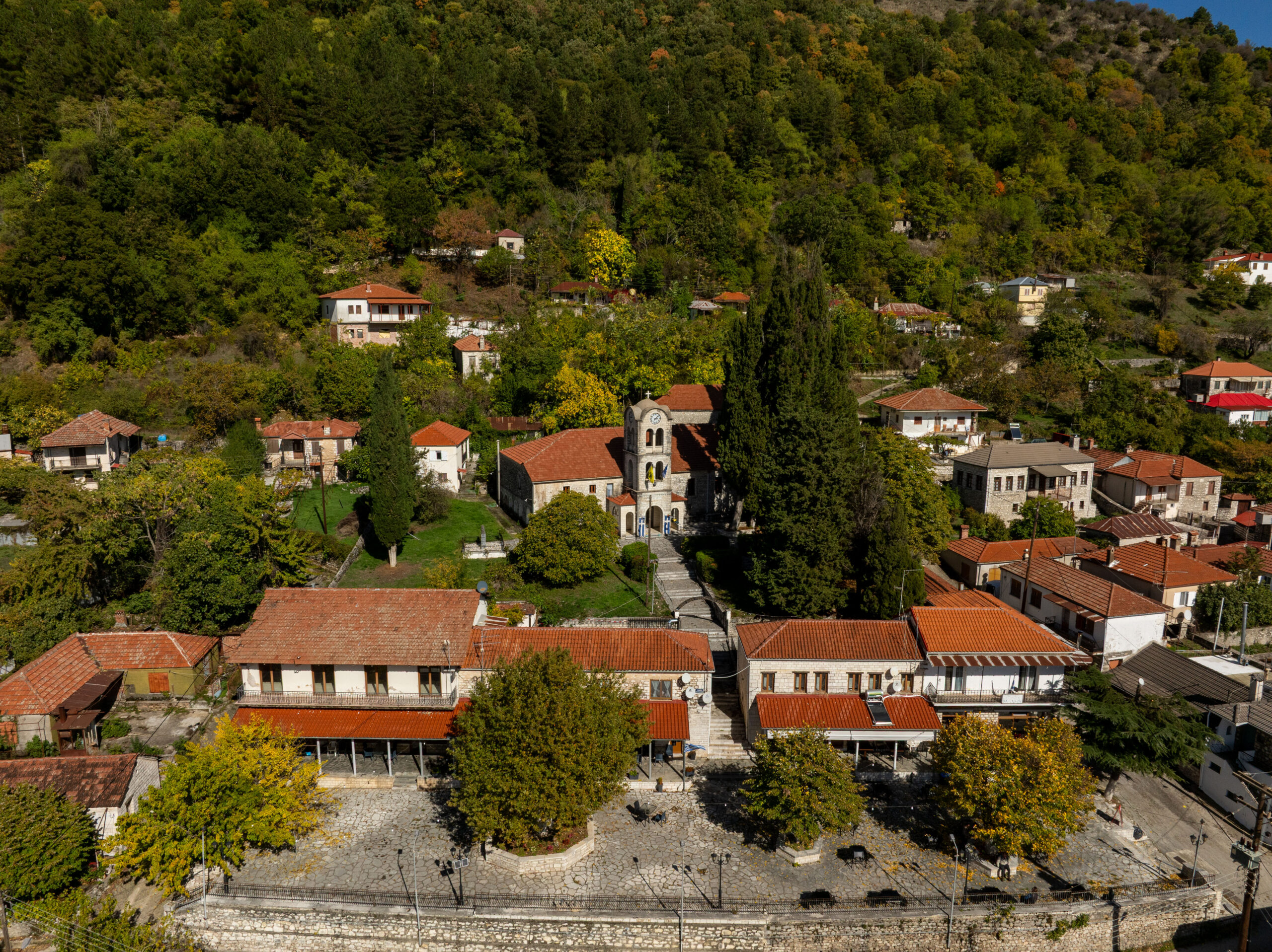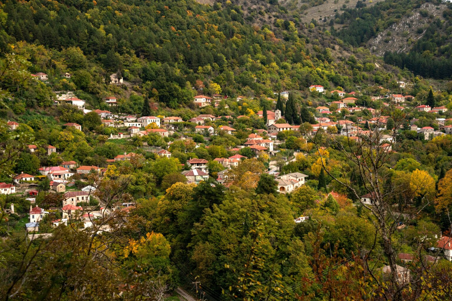 Αυτό που βλέπεις πρώτα, ωστόσο, δεν είναι τα μνημεία, είναι τα δέντρα. Ο καστανεώνας που τυλίγει το χωριό δεν είναι άγριο δάσος, αλλά φυτεμένος, σύμφωνα με τους ντόπιους, από τους Ενετούς. Εισήγαγαν την καλλιέργεια της καστανιάς ως εναλλακτική του σιταριού: άλεθαν το κάστανο και το έκαναν αλεύρι, έφτιαχναν ψωμί, και έτσι τρέφονταν οι ορεινοί πληθυσμοί. Το ξύλο χρησίμευε στις κατασκευές, ανθεκτικό στην υγρασία, σχεδόν αιώνιο. Στις δεκαετίες του ’50 και του ’60, ο τοπικός συνεταιρισμός διαχειριζόταν την παραγωγή συστηματικά. Το κάστανο ήταν εξαγώγιμο προϊόν, το χωριό ζούσε από αυτό.