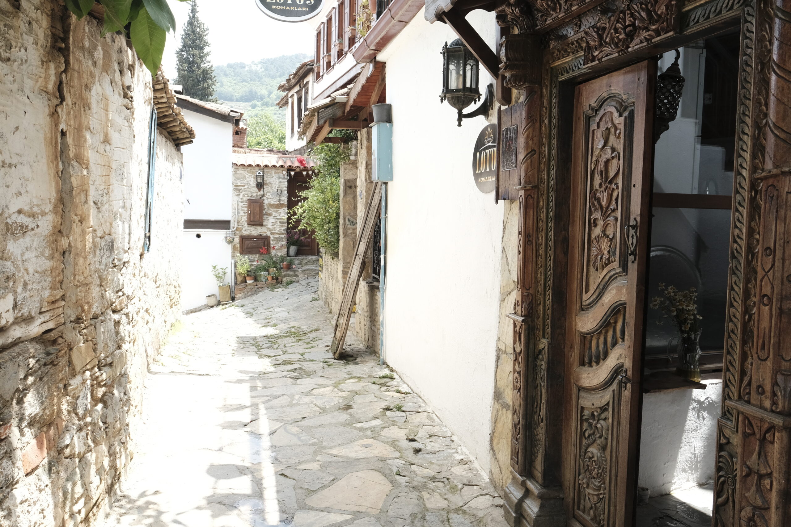 «Εδώ, γεννήθηκαν και μεγάλωσαν γενιές Ελλήνων που μιλούσαν τουρκικά αλλά έγραφαν με ελληνικούς χαρακτήρες», μας εξήγησε ο Μεχμέτ, ένας ηλικιωμένος κάτοικος που συναντήσαμε στην κεντρική πλατεία. Περπατώντας στα πέτρινα σοκάκια, νιώσαμε ότι γυρίζουμε πίσω στον χρόνο. Τα σπίτια, με τις ξύλινες χρωματιστές πόρτες και τα καφασωτά παράθυρα, στέκονταν περήφανα, έχοντας διατηρήσει τον χαρακτήρα τους παρά τις όποιες αλλαγές. Αρκετά μικρά καταστήματα πουλούσαν τοπικά προϊόντα -ελαιόλαδο, κρασί, γλυκά του κουταλιού, χειροποίητα κεντήματα.