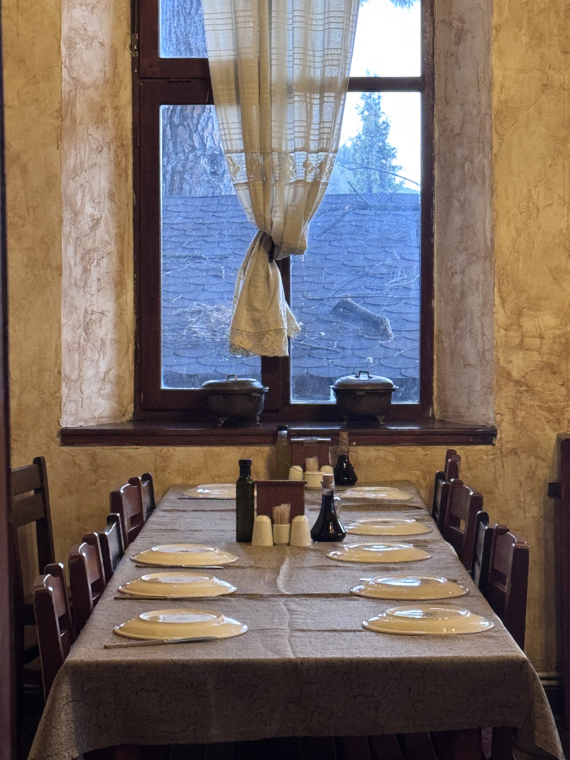 Καθώς έπεφτε το σούρουπο, περπατήσαμε στην κεντρική πλατεία του χωριού, αλλά και στο παλαιό σχολείο που έχει μετατραπεί σε μουσείο και εστιατόριο. Τα μικρά καφενεία και τα εστιατόρια είχαν γεμίσει με τουρίστες και ντόπιους. Οι μυρωδιές από τα παραδοσιακά φαγητά -ντολμάδες, μουσακά, μεζέδες- γέμιζαν τον αέρα.