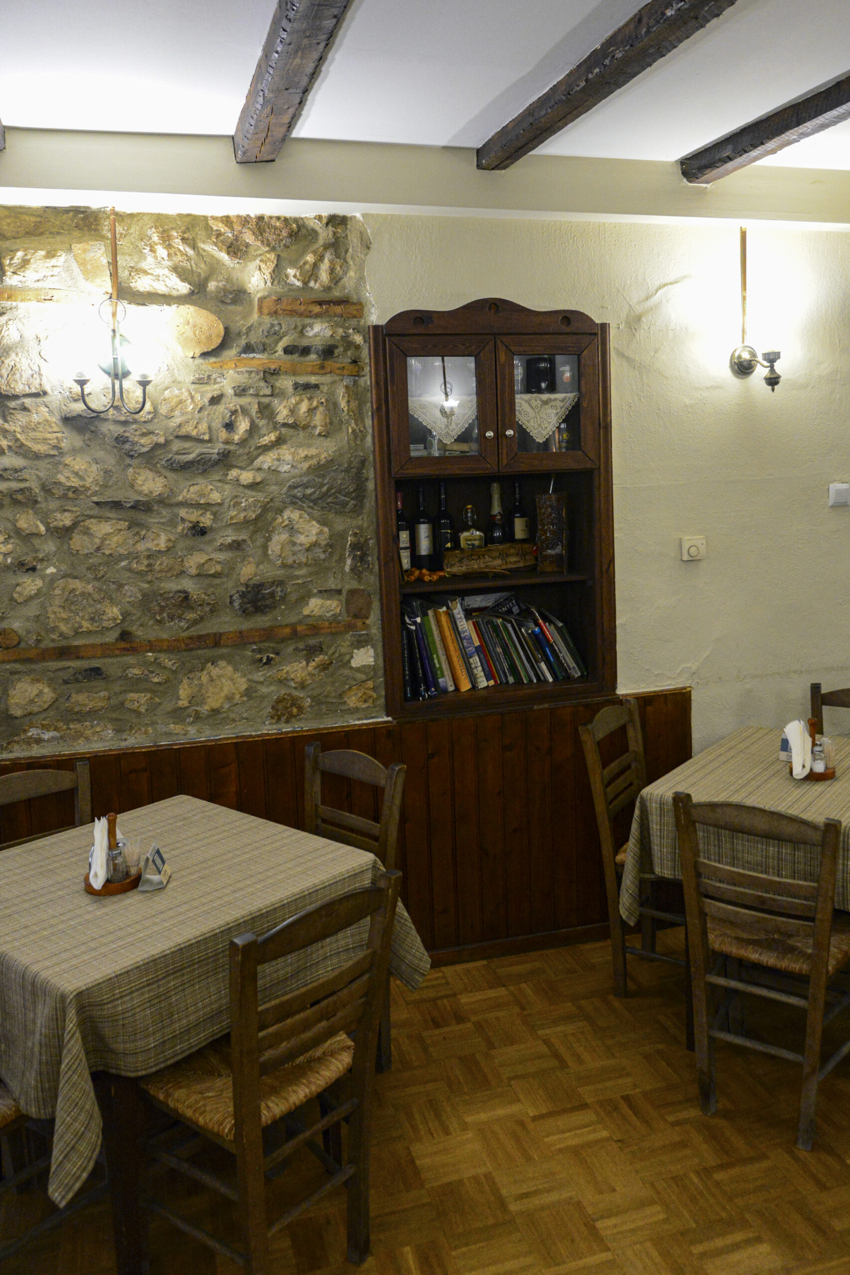Συναντάμε τον Γιάννη Βαβρίτσα, τον πρόεδρο του οικισμού. Είναι ένας δραστήριος και συνάμα έτοιμος να βοηθήσει όπου μπορεί ώστε να πάρουμε την καλύτερη εικόνα από το χωριό. Μας προσκαλεί για ένα τσίπουρο στην ταβέρνα του Ζήση, δίπλα στην πλατεία. Σχεδόν συνεχώς, μας μιλάει για το χωριό, ψάχνει στο κινητό του να μας δείξει φωτογραφίες, και μας προτρέπει να δούμε και άλλα πράγματα τριγύρω. Πίνοντας το τσίπουρο, δοκιμάζουμε και τα υπέροχα μεζεδάκια που ετοίμασε ο Ζήσης.
