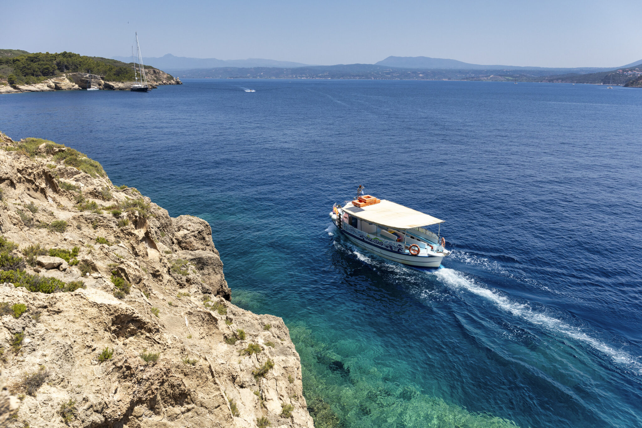 Ο ήλιος καίει ανελέητα και το τσιμέντο στον μικρό μόλο της Γιάλοβας μοιάζει να αχνίζει. Ζηλεύω όσους κάνουν μπάνιο στο διπλανό beach bar και κάθονται με τον καφέ τους κάτω από τα ψηλά πλατάνια. Δεν πειράζει, απαντάω νοερά στον εαυτό μου, η εμπειρία που θα ζήσουμε κάνοντας έναν prive περίπλου του όρμου του Ναυαρίνου είναι απείρως ωραιότερη. Και ευτυχώς το τουριστικό πλοίο Proti Cruises του Γιάννη Τεριζάκη, ο οποίος προσφέρθηκε να μας κάνει δωρεάν το μικρό αυτό ταξίδι, είναι εξοπλισμένο με στέγαστρο και το ψυγείο του με πολλά μπουκάλια παγωμένου νερού.