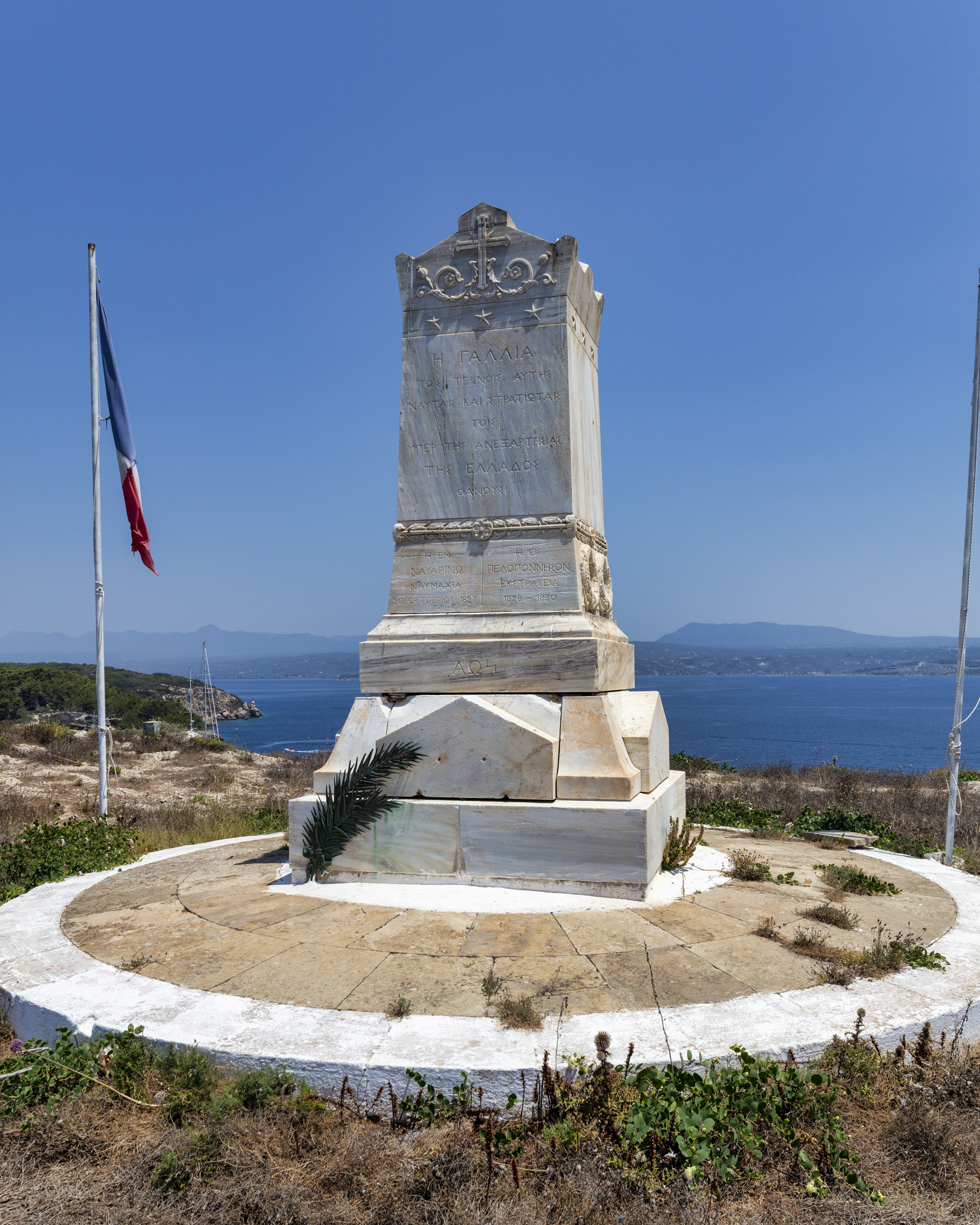 Πιο βόρεια είναι κτισμένο το ηρώο του, επίσης φιλέλληνα, κόμη Σαντόρε Σανταρόζα. Δένοντας στον μικρό μόλο, θα ανεβούμε μέχρι το μνημείο των Ρώσων πεσόντων της ναυμαχίας πλάι στον οποίο βρίσκεται το εντυπωσιακό ρωσικό εκκλησάκι του Αγίου Νικολάου. Μετά την απελευθέρωση, κτίστηκε δίπλα του το ξωκλήσι της Ανάληψης (Παναγούλα) στη θέση βυζαντινού μικρού ναού. Επιστρέφοντας θα περάσουμε πλάι από τη νησίδα Χελωνάκι, όπου υψώνεται το μνημείο των Άγγλων πεσόντων.
