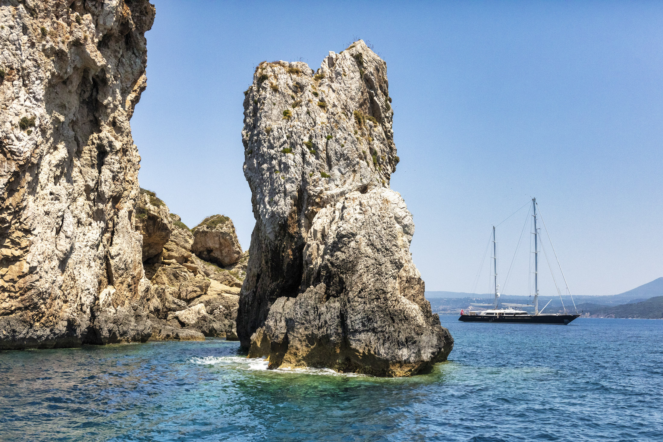 Συνεχίζοντας το ταξίδι μας, κάνουμε τον γύρο του Τσιχλί Μπαμπά από την εξωτερική πλευρά, εκεί όπου τα μποφόρ αυξάνονται. Με την ευκαιρία, ρυμουλκούμε για λίγο κι ένα μικρό ιστιοπλοϊκό που έχει πρόβλημα με τη μηχανή του -κάνοντας την καλή πράξη της ημέρας. Στη συνέχεια, περιπλέουμε τη Σφακτηρία. Στη νότια πλευρά της υπάρχει μια μαρμάρινη στήλη αφιερωμένη στους Έλληνες πεσόντες και σε μικρή απόσταση προς τα νοτιοδυτικά το επιτύμβιο μνημείο του λοχαγού Alex Mallet και ο τάφος του φιλέλληνα Παύλου Μαρία Βοναπάρτη, ανιψιού του Ναπολέοντα: είχε καταταγεί ως εθελοντής στη φρεγάτα του Άγγλου ναυάρχου Κόχραν με καπετάνιο τον Ανδρέα Μιαούλη και σκοτώθηκε μέσα στο πλοίο.