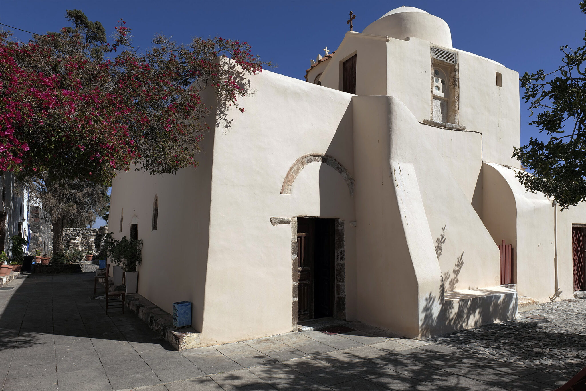 Όπως και να ‘χει, μια στάση στο ιστορικό διατηρητέο μνημείο της «Κυράς Επισκοπής» όπως αποκαλείται από τους ντόπιους -το σημαντικότερο βυζαντινό μνημείο της Σαντορίνης, το οποίο μάλιστα περιλαμβάνεται στις περιγραφές δύο απεσταλμένων του Πάπα τον 17ο αι.-, αποζημιώνει με μοναδικές εικόνες: τον εντυπωσιακό τοιχογραφικό διάκοσμο όπου απεικονίζονται Άγιοι και Ιεράρχες και παραστάσεις από τη Γένεση και την Κοίμηση της Θεοτόκου, ο οποίος έχει αναδειχθεί με διαδοχικές εργασίες συντήρησης και αναστήλωσης, τις κολώνες με τα αρχαία κιονόκρανα, το άριστα διατηρημένο βυζαντινό μαρμάρινο τέμπλο και την υπέροχη λιτανευτική εικόνα της Παναγίας Γλυκοφιλούσας. Η τελευταία από μόνη της συγκαταλέγεται στα πλέον σημαντικά και πολύτιμα θρησκευτικά κειμήλια των Κυκλάδων, μια τρυφερή απεικόνιση της Βρεφοκρατούσας Παναγίας που την αγκαλιάζει σφιχτά, ενώ τις μορφές τους περιβάλλουν έξι Ιεράρχες. Χρονολογούμενη στον 12ο αιώνα, η εικόνα που συμμετείχε κατά την παράδοση σε λιτανείες στα τείχη της Κωνσταντινούπολης, ξεχωρίζει για την τεχνοτροπία της και τις χρωματικές αντιθέσεις -προσέξτε το πράσινο φωτοστέφανο του Χριστού σε αντίθεση με το κόκκινο φόντο.