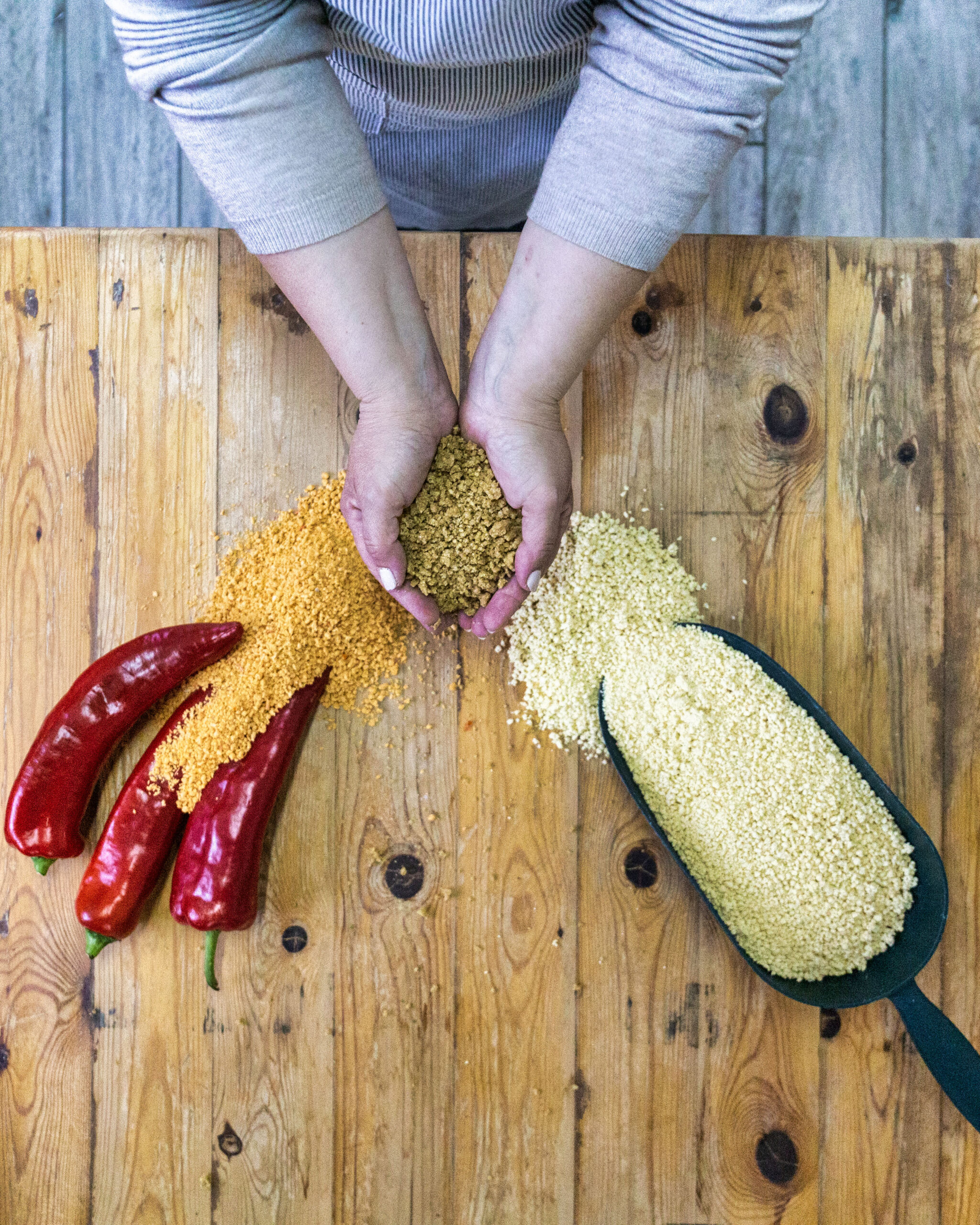 Και προσθέτει τις υπόλοιπες γεύσεις, σαν να βγάζει βέλη από τη φαρέτρα της: «Φτιάχνω ακόμη χυλοπίτες χωρίς αυγό, που έχουν μέσα χυμό λαχανικών. Εκτός από τον ξινό και τον γλυκό, κάνω και καυτερό τραχανά. Στον σαρακοστιανό προσθέτω λίγη γλυκιά πάπρικα και βασιλομανίταρα, ώστε να γίνει ακόμη πιο θρεπτικός. Μετά υπάρχουν κι άλλα σχήματα ζυμαρικών -κοχυλάκια, καμπανούλες».