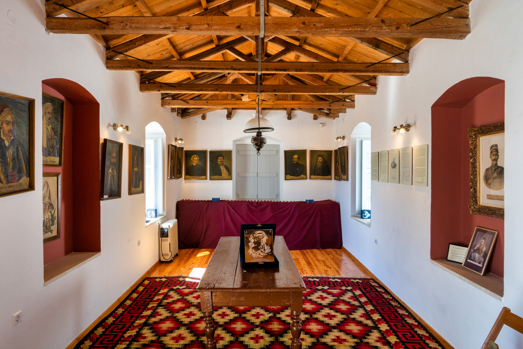 Υπενθυμίζοντας το γεγονός, οι τοίχοι φιλοξενούν πορτρέτα, καδραρισμένα έγγραφα της εποχής κι ένα χειρόγραφο σημείωμα του Κολοκοτρώνη. Στην αυλή του κτιρίου υπάρχει η προτομή του. Η άλλη αίθουσα που θα δούμε περιλαμβάνει φορεσιές, εργαλεία, όπλα και διάφορα κειμήλια που είναι δωρεές των κατοίκων.
