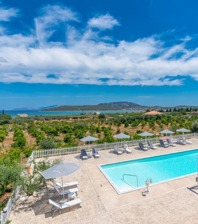 Leonidas Resort: συγκρότημα ενοικιαζόμενων δωματίων με μοντέρνα διακόσμηση, μέσα σε κτήμα 60 στρεμμάτων, με πισίνα.