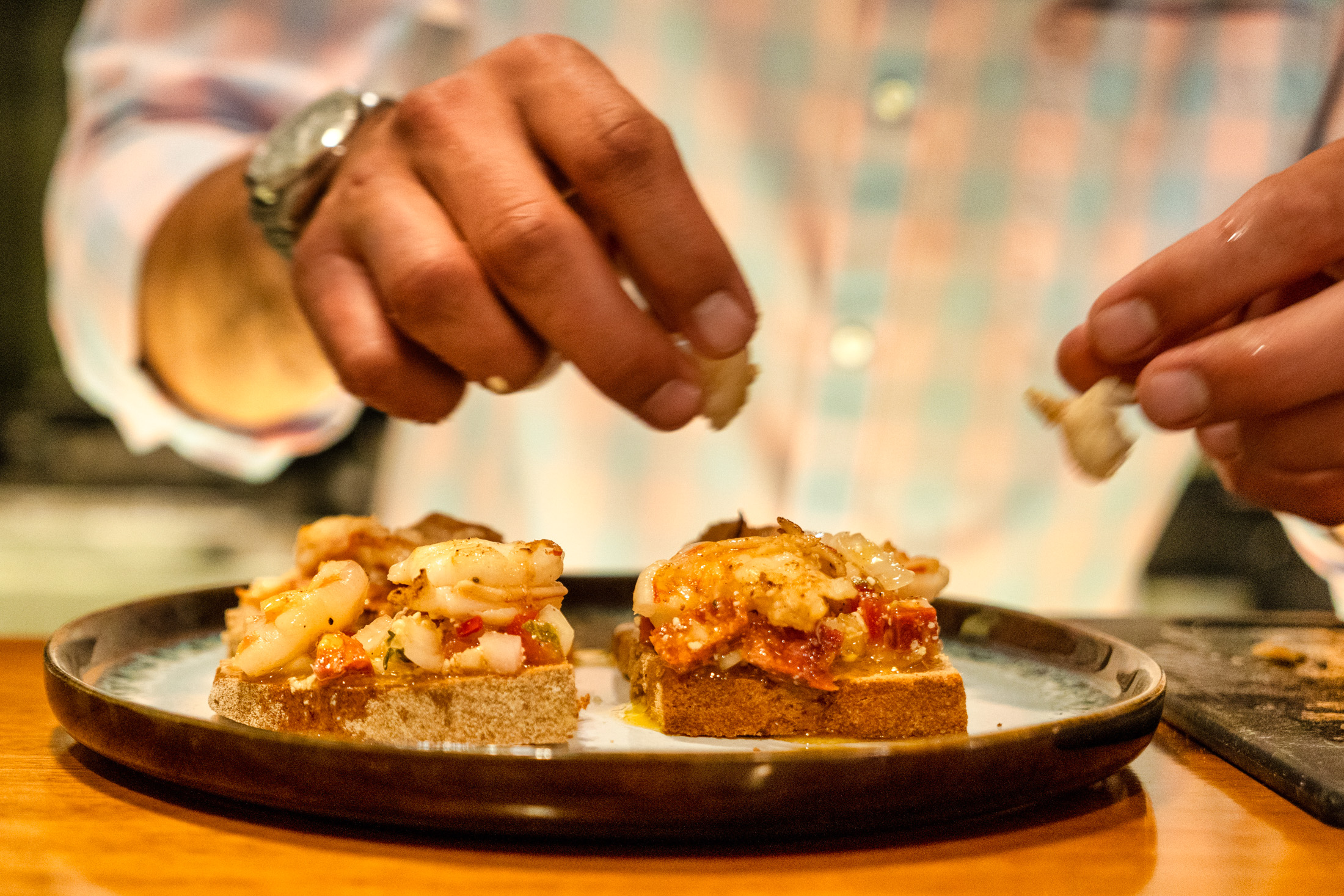 Δοκιμάσαμε εξαιρετικά πιάτα: καλαμάρι με ανθότυρο στον φούρνο, μπρουσκέτες, κριθαρότο και μια ασυνήθιστη γαριδομακαρονάδα με κανέλα και μπαχάρια. Τις συνταγές έφερε μαζί του ο Βαγγέλης και του τις δίδαξε ένας παππούς στην γειτονική Κοιλάδα. Όπως μας λέει, τις σέρβιρε για πολλά χρόνια στο εστιατόριο που διατηρούσε στο ψαροχώρι και είχε γίνει γνωστό στόμα με στόμα στους πλούσιους ιδιοκτήτες των βιλών της Ερμιονίδας.