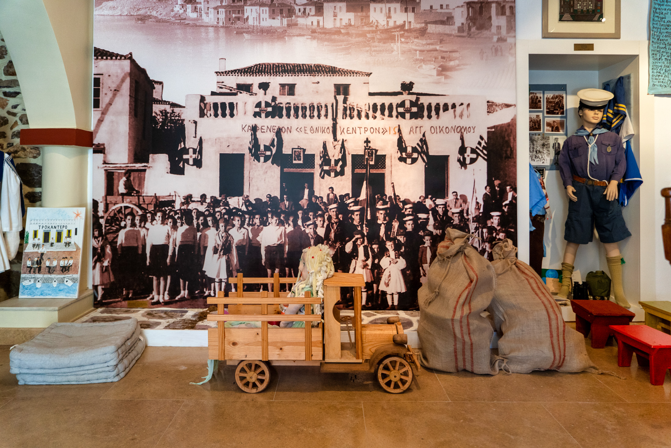 Την επόμενη βόλτα θα την κάνουμε στην παλιά γειτονιά της Ερμιόνης που είναι κτισμένη γύρω από την εκκλησία των Ταξιαρχών. Εκεί, βρίσκεται το Ιστορικό και Λαογραφικό Μουσείο που στεγάζεται στην ανακαινισμένη οικία Οικονόμου του 18ου αιώνα. Όπως θα μας πει η κυρία Ντίνα Αντωνοπούλου, που μαζί με τον σύζυγό της θα μας ανοίξουν την πρώτη αίθουσα του μουσείου, εκεί συγκεντρώθηκαν οι πληρεξούσιοι του Έθνους μετά την ορκωμοσία τους στον ναό των Ταξιαρχών στις 11 Ιανουαρίου του 1827. Συνέχισαν τις εργασίες της Γ΄ Εθνοσυνέλευσης που είχε αρχίσει στην Επίδαυρο και ολοκληρώθηκε στην Τροιζήνα.