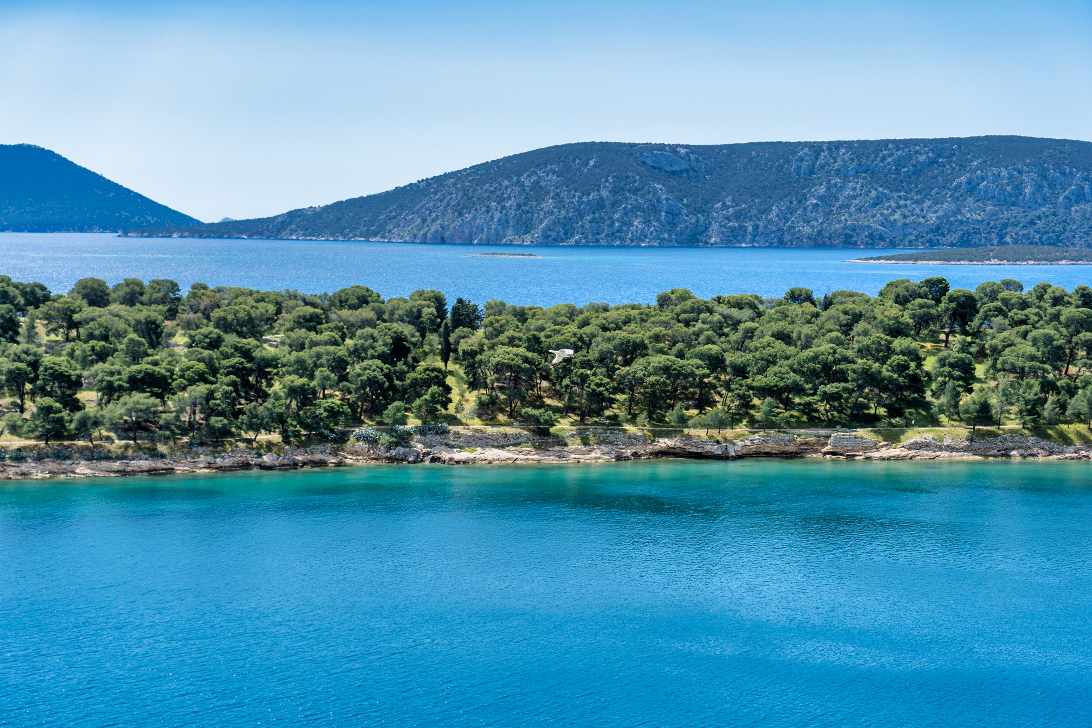 Από πού να ξεκινήσουμε τη βόλτα; Πάμε πρώτα στο πευκοδάσος Μπίστι. Εδώ, στους Αρχαϊκούς Χρόνους θεωρείται πως υπήρχε η πόλη των Ερμιονέων. Στην Κλασική και Ρωμαϊκή εποχή επεκτάθηκε ανάμεσα στα δύο λιμάνια, και περιβλήθηκε από ισχυρό τείχος, μικρά τμήματα του οποίου διατηρούνται στη χερσόνησο.
