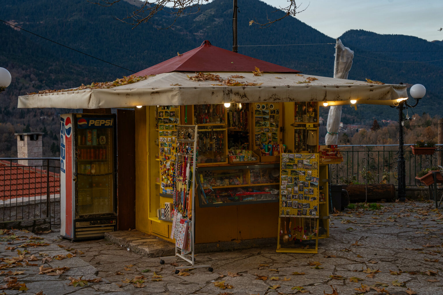 Στις πλαγιές της Καλιακούδας, στα 720 μ., φτάνεις στο Μεγάλο Χωριό και το πρώτο πράγμα που βλέπεις είναι ένας τεράστιος πλάτανος και ένα ψηλό ρολόι στην κεντρική πλατεία. Ένα μικρό κίτρινο περίπτερο, σαν να έχει μείνει εκεί από το σκηνικό μιας ταινίας. Διασχίζεις με τα πόδια ολόκληρο το Μεγάλο Χωριό σε 20 λεπτά. Ο χρόνος εδώ μετριέται αλλιώς.