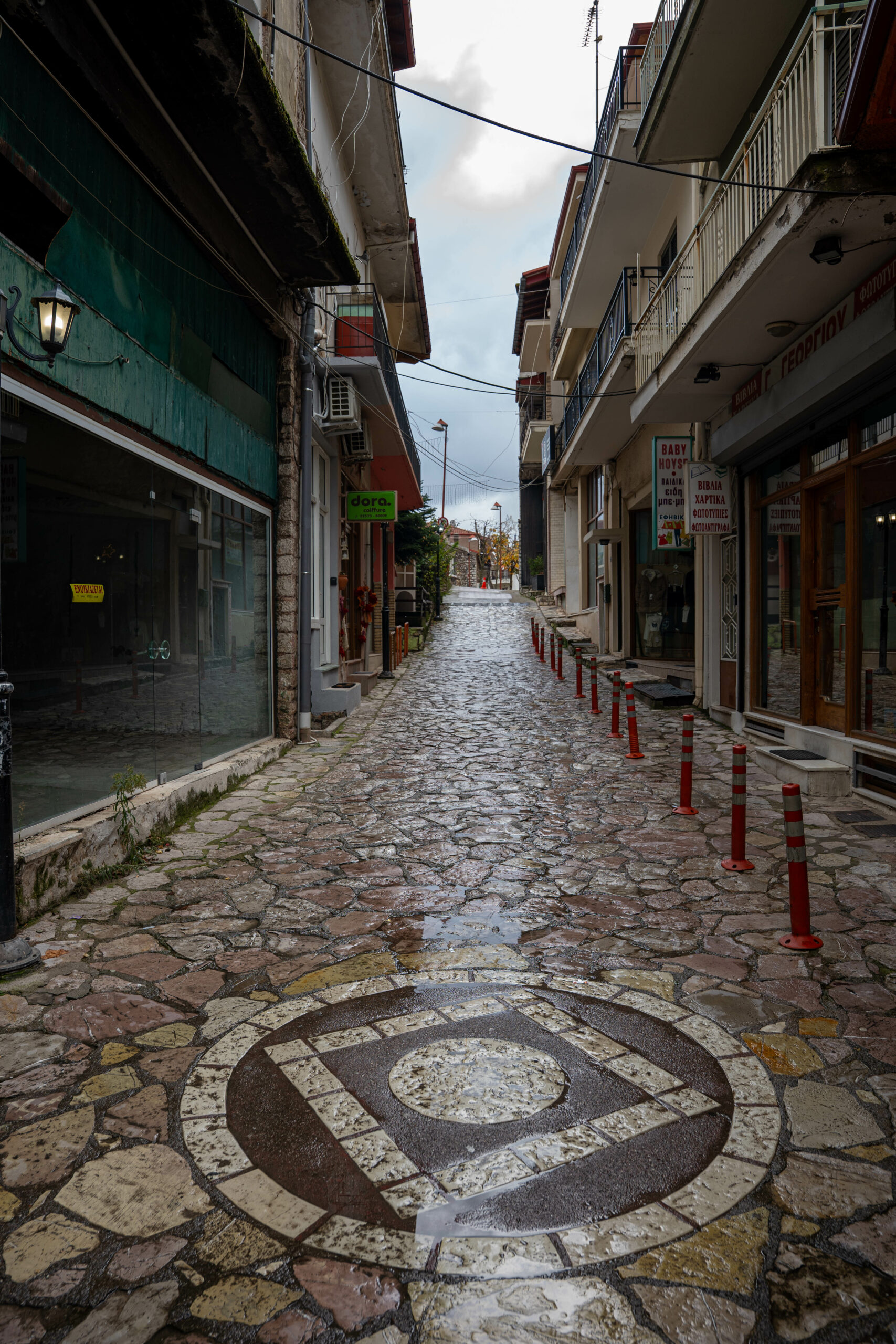 Άφησα το αυτοκίνητο, κοντά στην οδό Ζηνοπούλου, τον κεντρικό δρόμο, που διασχίζει την πόλη. Οι βιτρίνες των καταστημάτων έλαμπαν. Η ατμόσφαιρα μύριζε κανέλα και μαστίχα. Ένα κατάστημα με κεχριμπαρένιο μέλι από τα γύρω βουνά των Αγράφων μου τράβηξε την προσοχή. Παντοπωλεία με βότανα και τοπικά προϊόντα εναλλάσσονταν με σύγχρονα καταστήματα ρούχων και τεχνολογίας. Οι άνθρωποι βάδιζαν γρήγορα στα υγρά πεζοδρόμια, ενώ η ανάσα τους σχημάτιζε μικρά σύννεφα. Η πόλη, ζωντανή, δραστήρια, σύγχρονη.