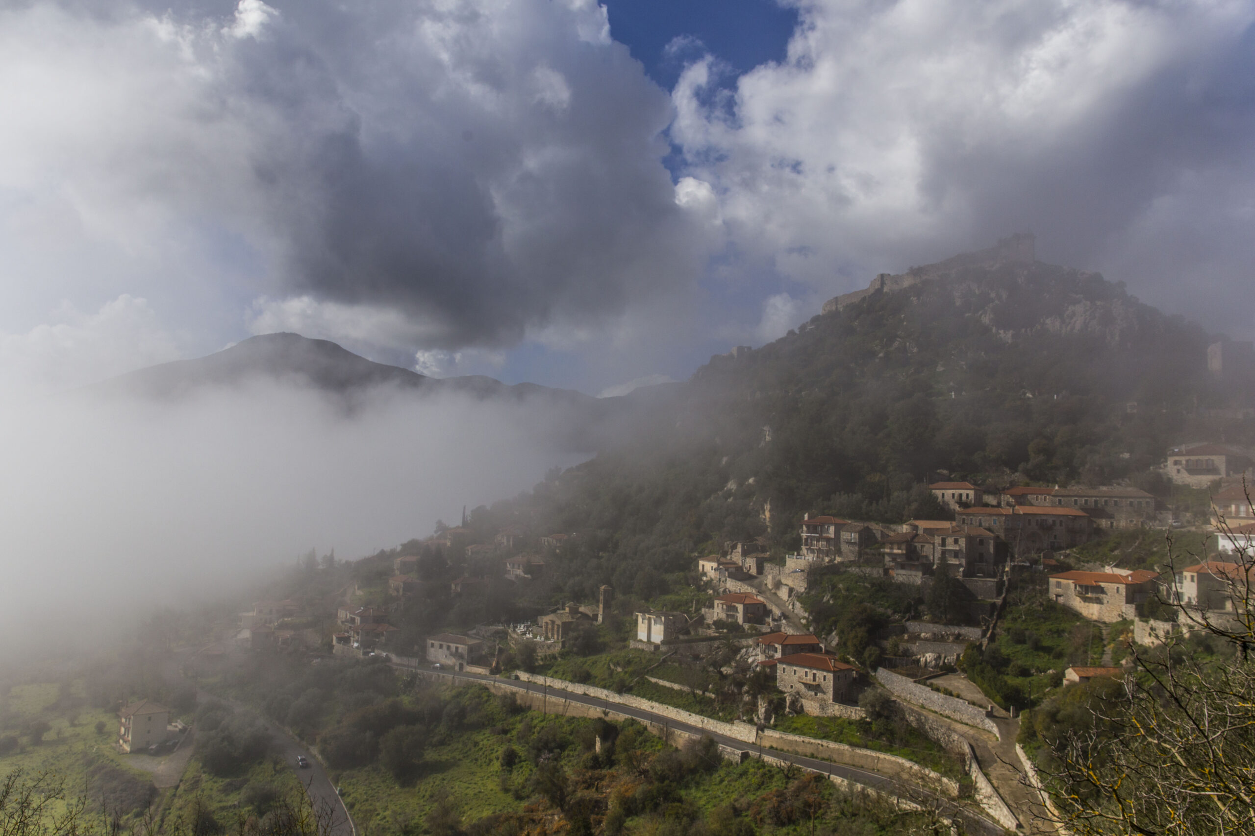 «Καλημέρα παιδιά, ωραία μέρα σας κάνει για φωτογράφιση». Είμαστε ήδη δυο μέρες στην περιοχή και οι ευγενέστατοι ντόπιοι προσφέρονται να μας βοηθήσουν στην περιήγηση και να απαντήσουν στις ερωτήσεις μας. Έχουν εξοικειωθεί, καθώς τον Σεπτέμβριο του ‘22, άνθρωποι με πολύ περισσότερο εξοπλισμό από εμάς και drone, ήρθαν στην Καρύταινα για να κάνουν γυρίσματα της σειράς «Μαύρο Ρόδο». Οι συντελεστές υποσχέθηκαν να ξανάρθουν και άλλη εποχή.