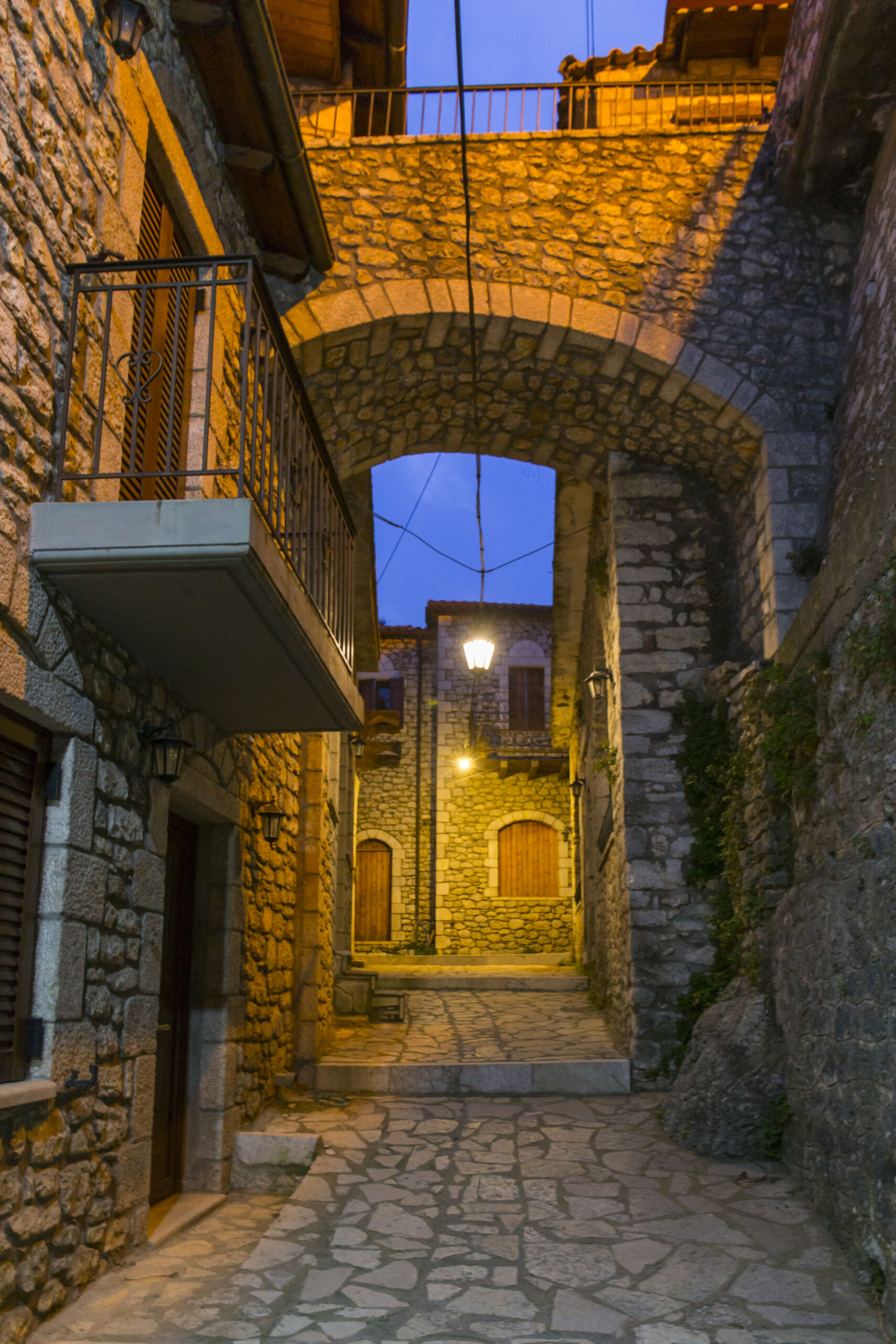 Η ομίχλη αργοσέρνεται γύρω από το φωτισμένο κάστρο, λες και ένας αόρατος σκηνοθέτης την παρήγγειλε ειδικά για μας. Είναι οκτώ το βράδυ. Έχουμε μόλις διανύσει τα 220 χιλιόμετρα από την Αθήνα μπαίνοντας κατευθείαν σ’ ένα σκηνικό που έρχεται σε πλήρη αντιδιαστολή μ’ αυτό όπου βρισκόμασταν λίγες ώρες πριν. Ελάχιστοι είναι οι διαβάτες στην μικρή πλατεία και στις γειτονιές του χωριού με τα εντυπωσιακά πέτρινα κτίρια και τις παλιές εκκλησίες (26, όπως θα μας πουν, μέσα και γύρω στο χωριό). Το καφέ-μπαρ Βρένθη όμως είναι ανοιχτό και εκεί θα κάνουμε την πρώτη στάση για φαγητό κι ένα γρήγορο ποτό.