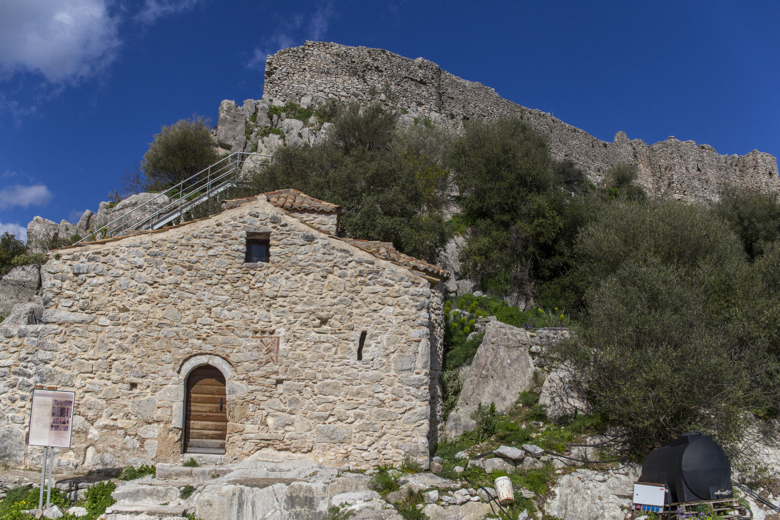 Η ανάβαση στο κάστρο, αν και κοπιαστική, μας αποζημιώνει σε κάθε βήμα. Ανηφορίζουμε πατώντας πάνω στα σκαλιά με τα τσουβάλια που είναι γεμάτα χώμα. Τα έβαλαν για να διευκολύνουν την άνοδο των μηχανημάτων προς το ψηλότερο σημείο όπου εκτελούνται έργα από την αρμόδια Εφορεία. «Κλειστόν μέχρι νεοτέρας», επομένως κι έτσι θα φτάσουμε μόνο ως την Παναγία του Κάστρου. Καιρός για μια συνάντηση με την Ιστορία.