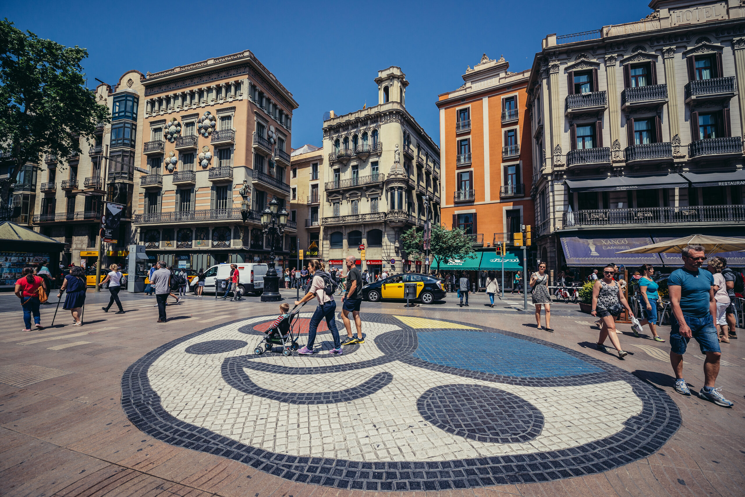 13:10 Ξεκινάμε από τη συνοικία Raval, μία από τις πιο εναλλακτικές και intellectuel γειτονιές της πόλης. Κάνουμε μια βόλτα στην κεντρική πλατεία του Raval, εδώ που ο Manu Chao πρωτογρατσούνισε την κιθάρα του, βγαίνουμε στον κεντρικό πεζόδρομο La Ramblas και κάνουμε τα πρώτα ψώνια τιμώντας την ισπανική μόδα και τις alternative εταιρείες που έχουν κατακτήσει την αγορά. Ξεκινάμε από τη Desigual (Placa Catalunya 9) με πολύχρωμα φορέματα και περίεργες μπλούζες και μετά διαλέγουμε έξυπνα logos στα t-shirts της Custo Barcelona (Placa del Pi, 2).
