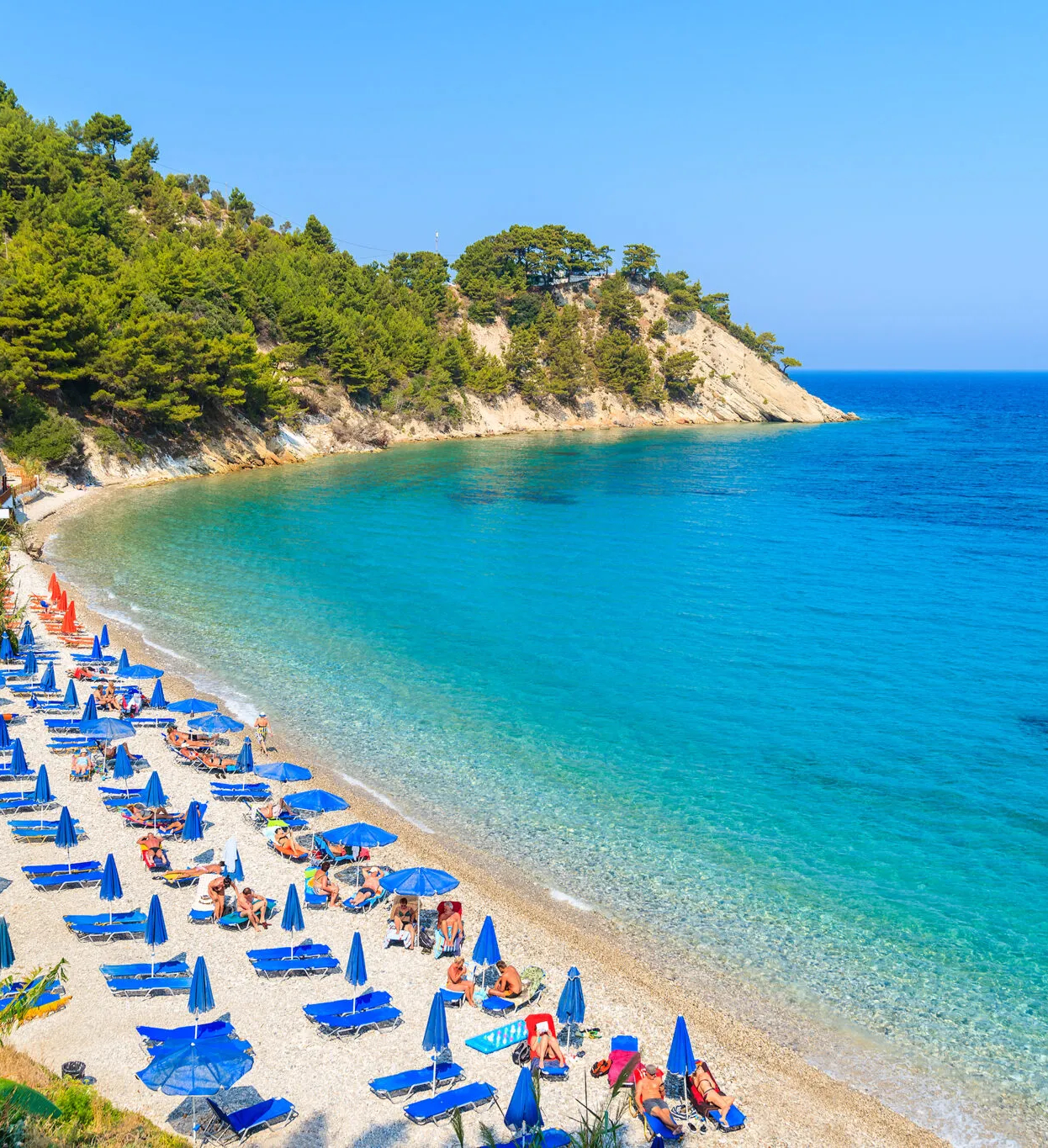 Η αλήθεια είναι πως οι επιλογές είναι αμέτρητες. Παραλίες οργανωμένες ή ελεύθερες από ξαπλώστρες, κοσμικές ή ερημικές, μικρές ή απλωμένες σε μήκος στολίζουν όλες τις ακτές του νησιού. Βασικό χαρακτηριστικό, το ψιλό βότσαλο, χωρίς όμως να λείπουν και οι αμμουδιές.