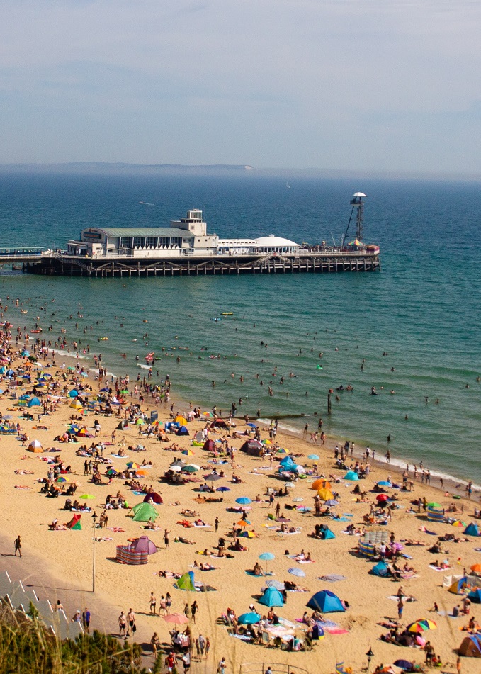 Σε μία νησιωτική χώρα που βρέχεται παντού από νερό, αλλά δεν φημίζεται για τις ωραίες παραλίες της μα ούτε για τις υψηλές θερμοκρασίες, οι κάτοικοι «διψούν» για λίγη ηλιοθεραπεία και για μερικές απολαυστικές βουτιές σε καθαρά νερά. Αυτός είναι ο λόγος που το Μπόρνμουθ παραμένει τόσο δημοφιλές, ανάμεσα στις πόλεις της νότιας Μεγάλης Βρετανίας, αφού η φαρδιά, μεγάλη παραλία του, στρωμένη με ζεστή και μαλακή χρυσή άμμο, αποτελεί ένα μέρος πραγματικά ειδυλλιακό και πέρα για πέρα γαλήνιο, έναν φιλόξενο καλοκαιρινό παράδεισο για όλες τις εποχές του χρόνου.