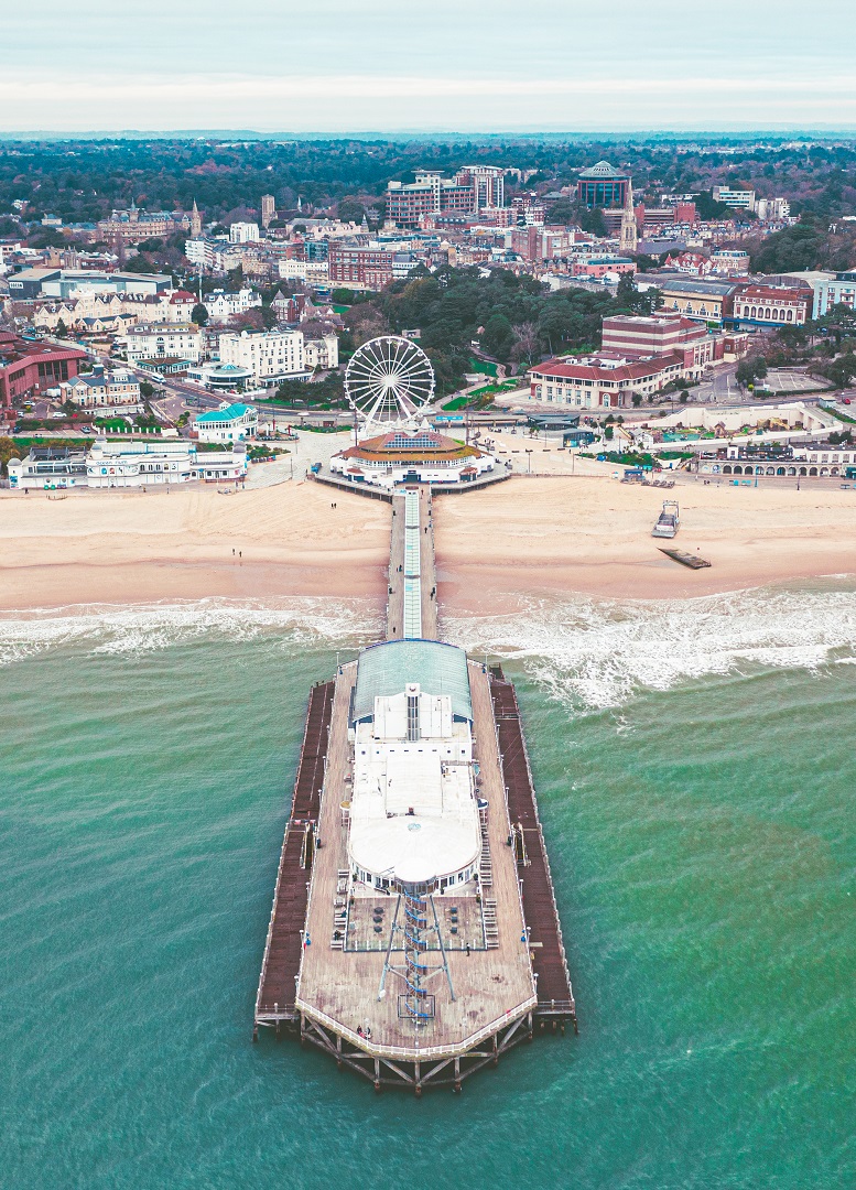 Το Mπόρνμουθ, απλωμένο πάνω στη θάλασσα της Μάγχης και «φωλιασμένο» σε έναν κόλπο που επιτρέπει στα νερά να είναι πιο ζεστά σε σχέση με την υπόλοιπη περιοχή, είναι μία πόλη φωτογενής, με κινηματογραφική ομορφιά και μία αδιαπραγμάτευτη ρετρό διάθεση που την κάνει τόσο μα τόσο ξεχωριστή. Στην φαρδιά παραλία της πόλης, εκεί όπου το καλοκαίρι θα δείτε εκατοντάδες ομπρέλες, απλώστρες και σκηνές για τον ήλιο η ατμόσφαιρα θυμίζει πάρτι, με μία μεγάλη ρόδα λούνα παρκ να περιμένει να σας ανεβάσει ψηλά στα σύννεφα και μία επιβλητική προβλήτα ιδανική για βόλτες πάνω στο νερό.
