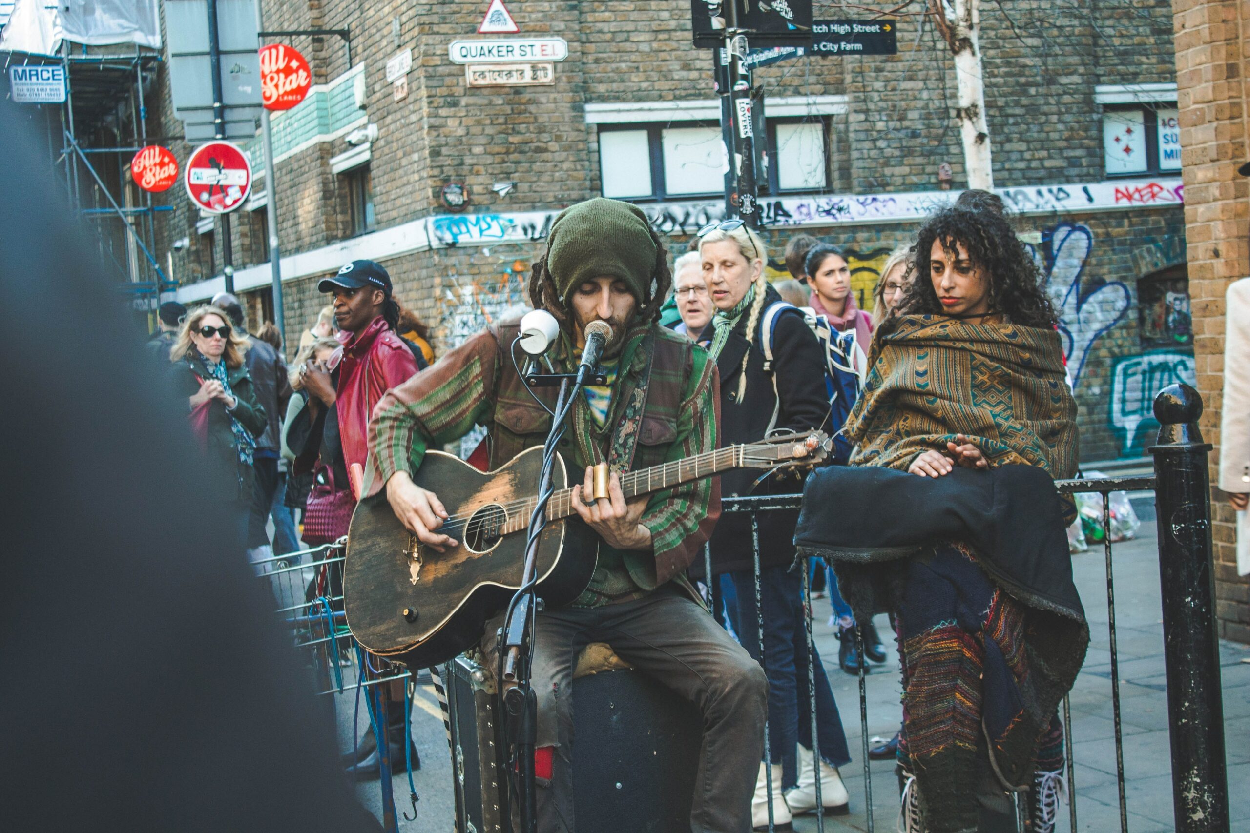 Όσο συναρπαστική κι αν είναι η περιήγηση στις αγορές του Old Truman Brewery, μην ξεχνάτε ότι όλη η δράση είναι έξω στο δρόμο, ανάμεσα σε ακόμη περισσότερους πάγκους φαγητών που διαθέτουν από cupcakes ως τηγανιτές γλυκοπατάτες κι από βάφλες ως hot dogs, με εμπόρους cool και προχωρημένων ή vintage και retro ρούχων και με πωλητές των πιο ευφάνταστων αντικειμένων για να διακοσμήσετε το σπίτι σας. Μπροστά στα μάτια σας οι ζωηρές, εναλλασσόμενες εικόνες διαδέχονται σαν οπτικές εκπλήξεις η μία την άλλη, ενώ οι υπόλοιπες αισθήσεις ικανοποιούνται από επίδοξους μάγειρες, διασκεδαστές και μουσικούς που συχνά ξεσηκώνουν το πλήθος.