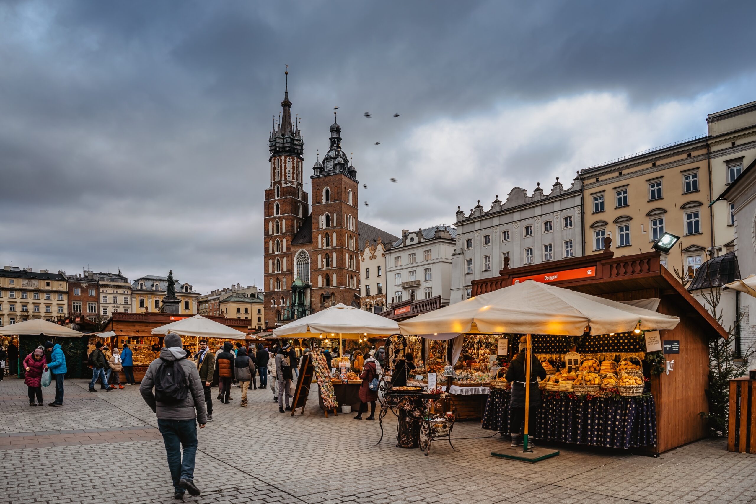 Από τις καλύτερες χριστουγεννιάτικες αγορές της χώρας είναι και εκείνη της Κρακοβίας. Απλώνεται στην κεντρική πλατεία, τη Rynek Główny, ακριβώς δίπλα στην περίφημη Αίθουσα Υφασμάτων, και προσφέρει μεγάλη ποικιλία σε δώρα, χειροτεχνήματα και μικρά ιδιαίτερα αντικείμενα, μαζί με πλούσιες επιλογές σε παραδοσιακό πολωνικό φαγητό. Θα δείτε περισσότερες νεαρές ηλικίες να περιπλανιούνται ανάμεσα στους πάγκους σε σύγκριση με Γερμανία και Αυστρία, ενώ οι τιμές είναι πιο προσιτές.