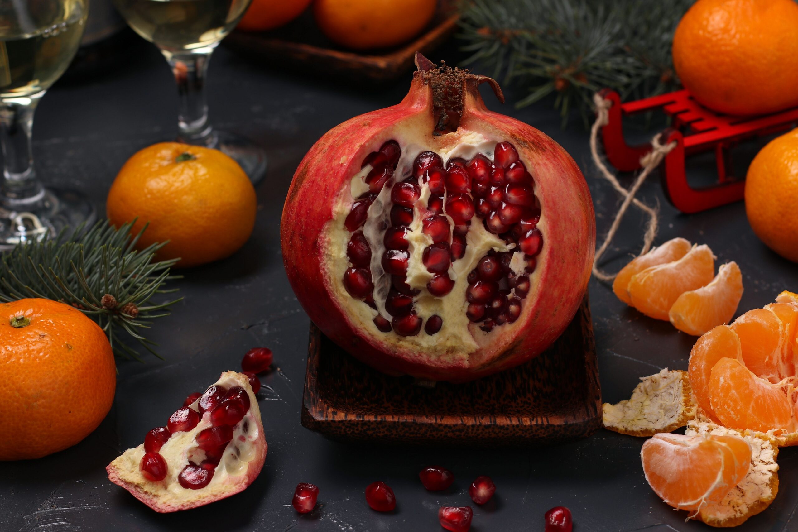 Το ρόδι είναι ένας καρπός που, από την αρχαιότητα, έχει συνδεθεί με τον κύκλο των εποχών, την αναγέννηση της φύσης, την καλοτυχία, τη γονιμότητα και την αφθονία. Ξεκίνησε από την Πελοπόννησο αλλά γρήγορα το υιοθέτησαν πολλές περιοχές σε ολόκληρη τη χώρα. Το πρωί της Πρωτοχρονιάς, λοιπόν, οι πιστοί πηγαίνουν ένα ρόδι στην εκκλησία, συνήθως αυτός είναι ο νοικοκύρης του σπιτιού, για να το ευλογήσει ο παπάς. Επιστρέφοντας στο σπίτι χτυπάει την πόρτα και όταν του ανοίξουν σπάει το ρόδι μπροστά της για να σκορπίσουν οι ρόγες του ροδιού παντού δίνοντας την ευχή «με υγεία, ευτυχία και χαρά το νέος έτος και όσα σπυριά έχει το ρόδι, τόσες λίρες να έχει η τσέπη».