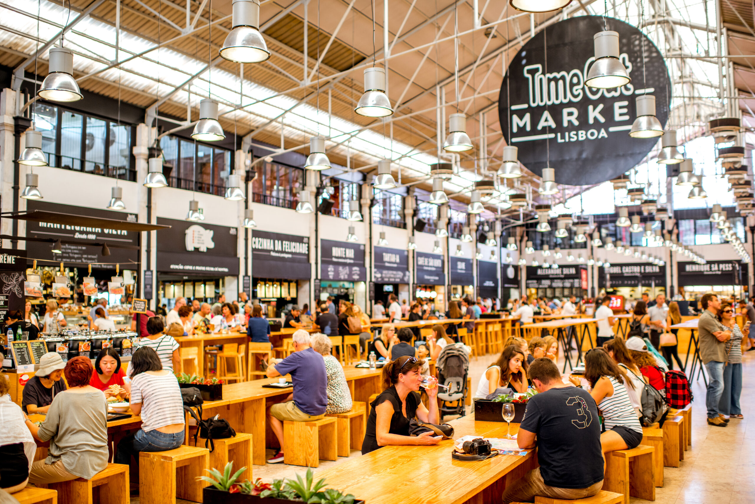 Η Time Out Market Lisboa φημίζεται για τους δεκάδες πάγκους που φιλοξενεί -αρκετοί από τους οποίους προσφέρουν γαστρονομικές προτάσεις με την υπογραφή διάσημων Πορτογάλων σεφ- καθώς και για την τεράστια ποικιλία φαγητού που προσφέρει: εξαιρετικά φρέσκα φρούτα και λαχανικά, εκλεκτά θαλασσινά, τοπικές συνταγές, καλές τιμές και ένα πολύχρωμο, ζωντανό περιβάλλον. Το γεγονός ότι παραμένει ανοιχτή καθημερινά, από τις 10 το πρωί έως τις 12 τα μεσάνυχτα, την καθιστά ιδανική επιλογή για κάθε ώρα της ημέρας, είτε θέλετε να τσιμπολογήσετε κάτι πρόχειρο είτε να ζήσετε μια ολοκληρωμένη γαστρονομική εμπειρία.