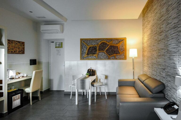 Άνετα δωμάτια με μεγάλα κρεβάτια και ένα πολύ ωραίο μοντέρνο μπάνιο, ενώ αρκετά από αυτά διαθέτουν καναπέ και τραπέζι. Το ξενοδοχείο απέχει 1,1 χιλιόμετρο από τη Via Margutta και την Πλατεία του Αγίου Πέτρου. Θα πληρώσετε περίπου 130 ευρώ τη βραδιά για ένα δίκλινο δωμάτιο τον μήνα Φεβρουάριο. Στην τιμή συμπεριλαμβάνεται και το πρωινό.