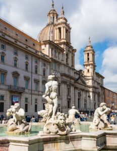 Ένα από τα πράγματα για τα οποία η Ρώμη φημίζεται, είναι οι πανέμορφες δημόσιες πλατείες, συναρπαστικά και ολοζώντανα αρχιτεκτονικά αριστουργήματα που έχουν κρατήσει την αφοπλιστική γοητεία τους αναλλοίωτη στον χρόνο. Πρωταγωνίστρια ανάμεσα τους η συναρπαστική και πραγματικά τεράστια Piazza Navona, τόσο στρατηγικά τοποθετημένη στην καρδιά της πόλης που απλά είναι αδύνατο να μην «πέσετε» πάνω στα εκπληκτικά μνημεία και την θορυβώδη πολυκοσμία της. Γύρω από την πλατεία αμέτρητα καφέ και εστιατόρια συνθέτουν ένα κομμάτι από την πολυφωτογραφημένη και τόσο διάσημη ρωμαϊκή ταυτότητα, αυτή την έντονη τουριστική ομορφιά που οι σινεφίλ έχουν συνδέσει στο μυαλό τους με τη γνωστή ταινία «Roman Holidays» με πρωταγωνίστρια την Όντρεϊ Χέπμπορν.