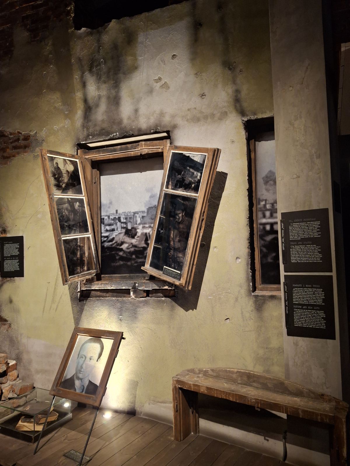 Βίντεο, ρούχα, όπλα, διαδραστικές οθόνες, συρτάρια με κείμενα που αφηγούνται την ιστορία, γραπτές μαρτυρίες για το πώς ήταν η ζωή κατά τη γερμανική κατοχή, την εξέγερση και τα επακόλουθά της. Εικόνες και βίντεο που δείχνουν την ανθρώπινη εξαθλίωση από την πείνα και τον πόλεμο, τους μαζικούς τάφους και τις εκτελέσεις. Σε ένα τμήμα του μουσείου, η εγκατάσταση μισογκρεμισμένων τοίχων δηλώνει την ισοπέδωση της πόλης, ενώ μια αίθουσα είναι αφιερωμένη στους «μικρούς αντιστασιακούς», στον ρόλο δηλαδή των παιδιών στην αντίσταση. Σε ένα άλλο σημείο, ένα βομβαρδιστικό κρέμεται από το ταβάνι, με τους έλικες να γυρίζουν, και ήχοι πολέμου ακούγονται παντού. Λίγο πιο πίσω, μικρές στοές παραπέμπουν στους υπονόμους στους οποίους δρούσαν οι αντιστασιακοί. Μικρά δωματιάκια με οθόνες, όπου άνθρωποι που είχαν συμμετάσχει στον πόλεμο αφηγούνται τις μάχες, τις αποφάσεις, τις ενέργειες και τις συνέπειες. Ένα μικρό αμφιθέατρο με μια μεγάλη οθόνη, σε ρόλο κινηματογράφου, δείχνει στιγμιότυπα που κατέγραψαν κινηματογραφιστές της εποχής το 1944.