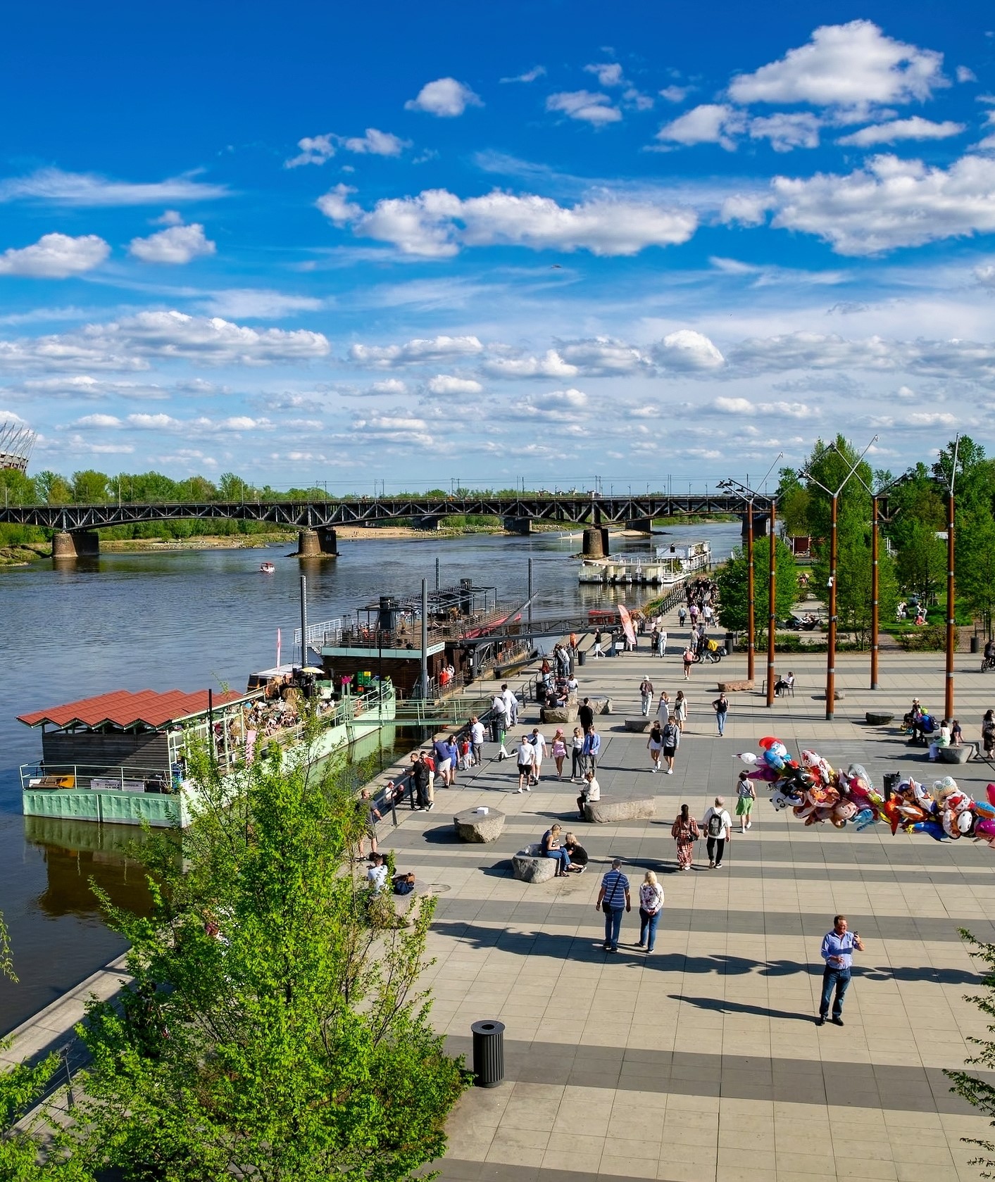 Ο Βιστούλας είναι ένα από τα μεγαλύτερα ποτάμια της Πολωνίας και διασχίζει τη Βαρσοβία, με πλάτος που σε ορισμένα σημεία ξεπερνά τα 300 μέτρα. Στις όχθες του μπορείτε να απολαύσετε ένα χαλαρό και αναζωογονητικό περπάτημα, κάνοντας μια μικρή ανασκόπηση όσων έχετε ήδη δει στην πόλη. Ένα από τα πιο όμορφα σημεία είναι αυτό που ξεκινά από τη γέφυρα κοντά στο Επιστημονικό Κέντρο «Κοπέρνικος». Εκεί μπορείτε να περπατήσετε χαλαρά, παρατηρώντας το μεγάλο ποτάμι και τα πουλιά που περνούν χαμηλά πάνω από το νερό, ενώ έχετε τη δυνατότητα να κάνετε μια στάση σε κάποιο από τα πλωτά καφέ και εστιατόρια της περιοχής. Στην απέναντι πλευρά, το περπάτημα γίνεται σε μονοπάτι ανάμεσα στα δέντρα. Αν επισκεφθείτε την πόλη την άνοιξη, θα απολαύσετε το πλούσιο πράσινο που απλώνεται γύρω σας, ενώ το τοπίο αλλάζει, με το φως να απλώνεται στο ποτάμι και τη βλάστηση να πυκνώνει γύρω από τις όχθες.