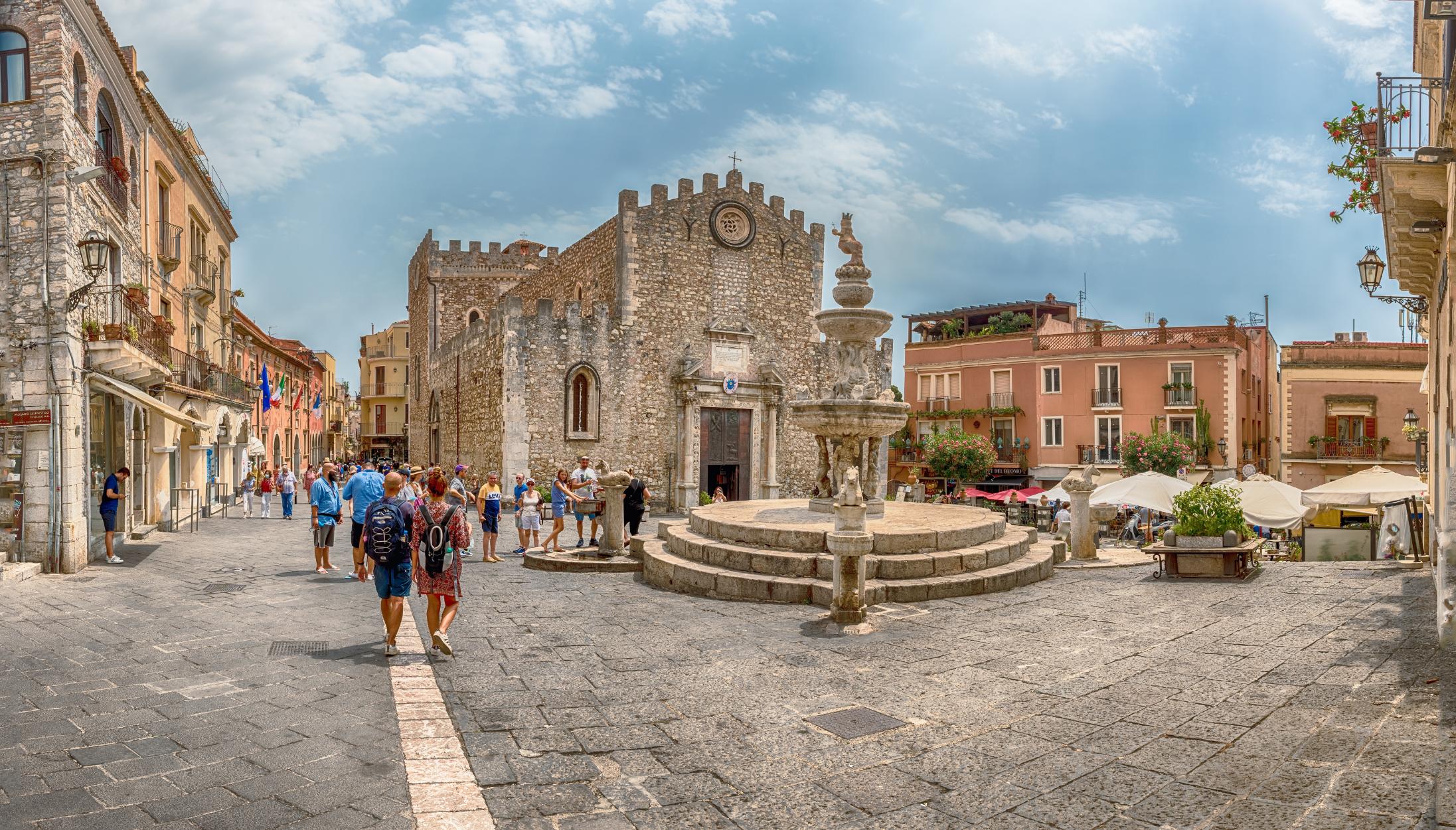 Κατά µήκος της Corso Umberto, θα θαυµάσετε και τα παλάτια που απεικονίζουν µε τον καλύτερο τρόπο την επιρροή της Αναγέννησης, όπως το Palazzo Duca di Santo Stefano, το Palazzo Corvaja και το Palazzo Ciampoli. Αξίζει να σημειωθεί ότι το κέντρο της πόλης με τις σμαραγδένιες ακτές της Isola Bella συνδέει το ιστορικό τελεφερίκ, το οποίο καλύπτει μια απόσταση συνολικά 700 μέτρων.