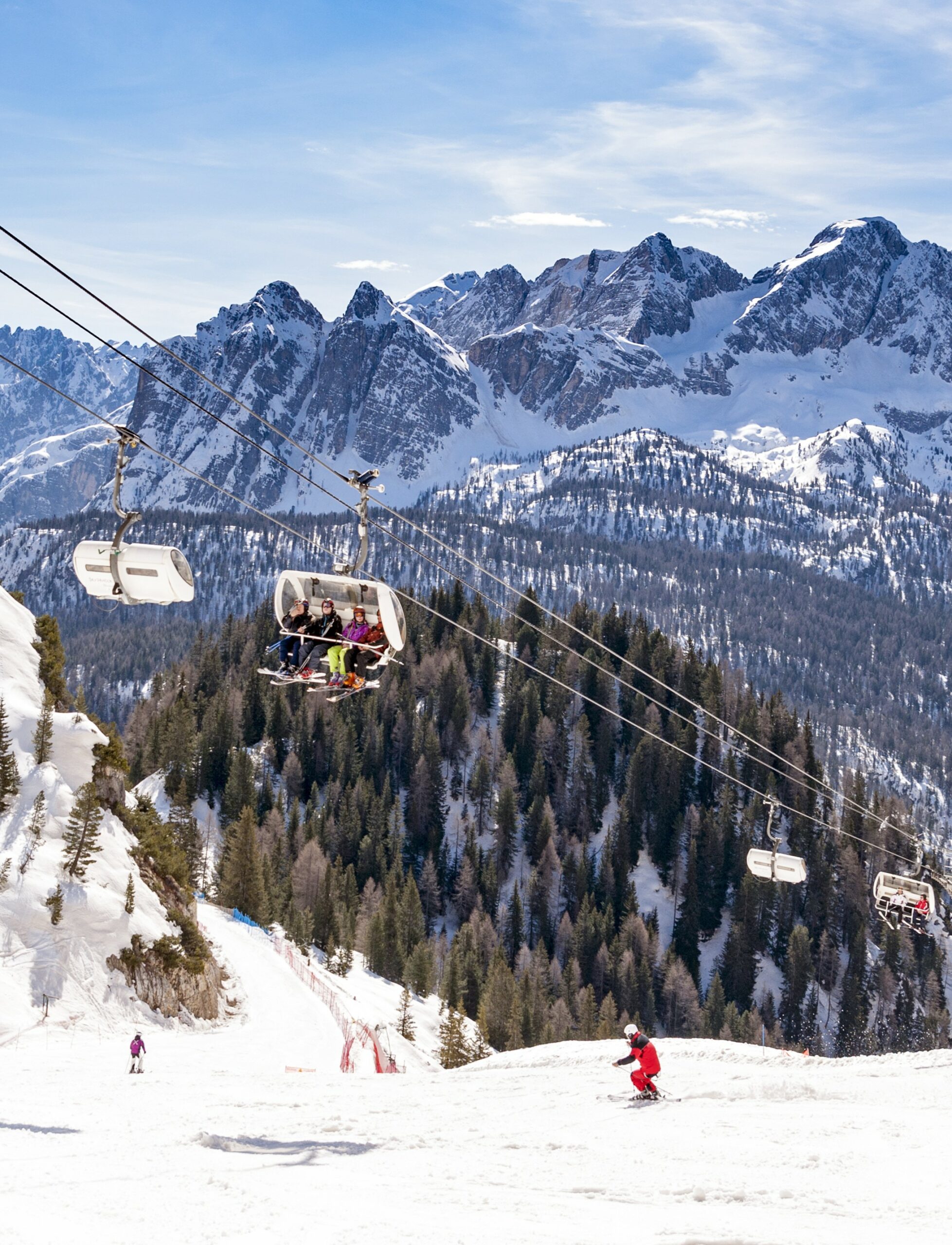 Η «βασίλισσα των Δολομιτών» όπως αποκαλείται η Κορτίνα ντ’Αμπέτσο, φωλιάζει στα 900 μέτρα, βαθιά στην κοιλάδα του Βένετο, μια περιοχή η οποία, από όπου κι αν την προσεγγίσεις, σε αφήνει έκπληκτο με τον τρόπο που την φρουρούν οι επιβλητικές βουνοκορφές. Σε αυτό το πανέμορφο κάθε εποχή σκηνικό που συνθέτουν οι Δολομίτες, η Κορτίνα είναι το ωραιότερο –και πολυτελέστερο- ιταλικό θέρετρο για σκι, διατηρώντας παρά την παγκόσμια φήμη της, έναν αέρα αυθεντικά ιταλικό, ανεπηρέαστη από την κουλτούρα των γειτονικών γερμανικών και αυστριακών αλπικών θέρετρων. Οι πλαγιές της είναι χωρισμένες σε τρεις ανεξάρτητες περιοχές για σκι, καθεμιά με το δικό της χαρακτήρα, όλες όμως με διαδρομές για όλα τα επίπεδα. Και όπως θα περίμενε κανείς από μια περιοχή της Ιταλίας, η αίσθηση της ευζωίας απλώνεται και πέρα από τις πίστες, στις après ski εμπειρίες και στιγμές.